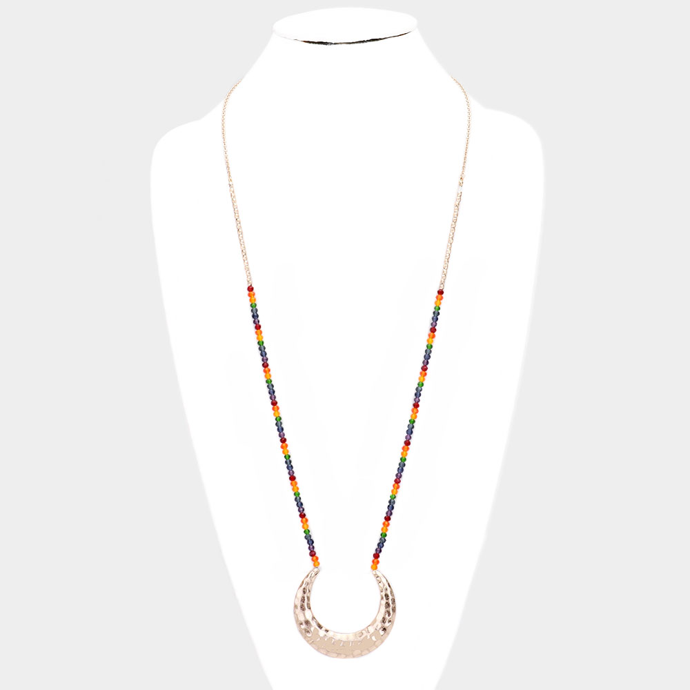 Cheetah Patterned Genuine Leather Crescent Moon Pendant Double Layered Necklace