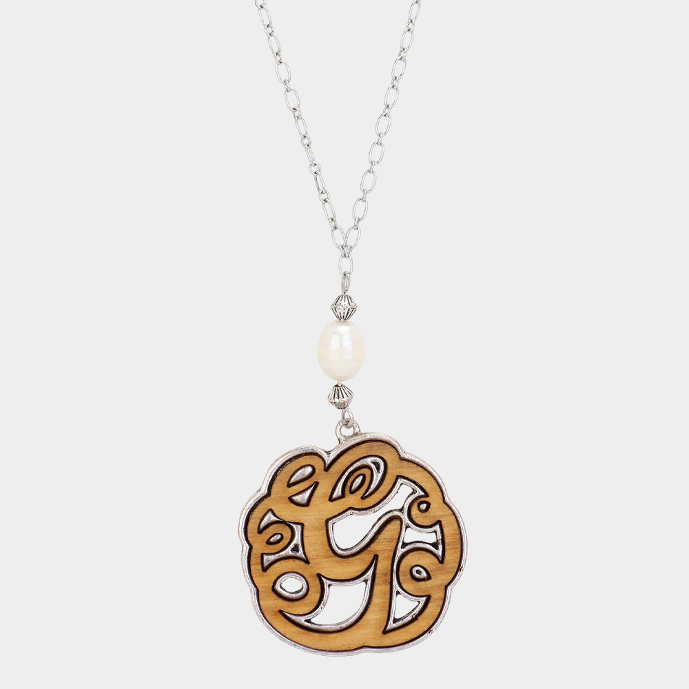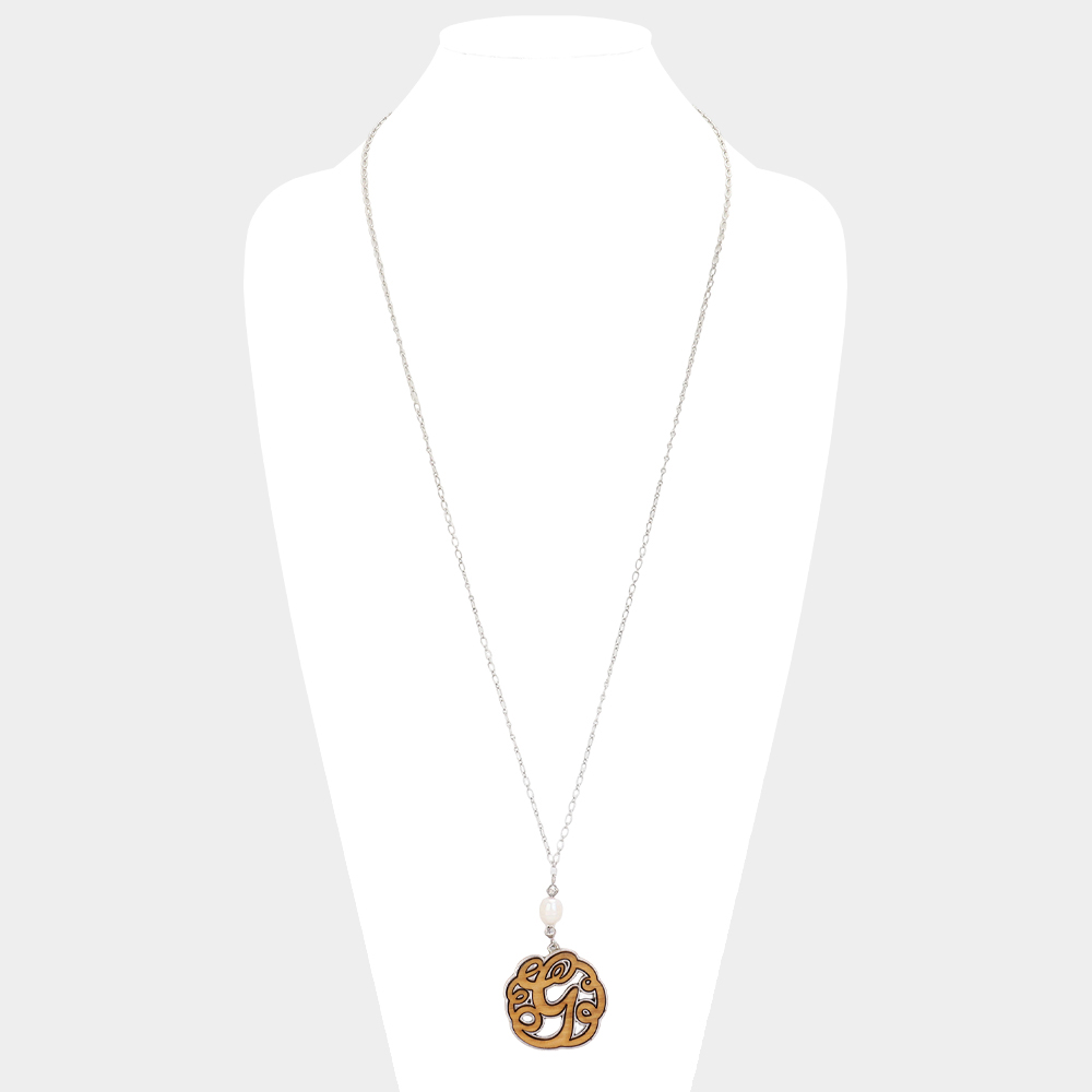 Initial G Monogram Wooden Pendant Necklace