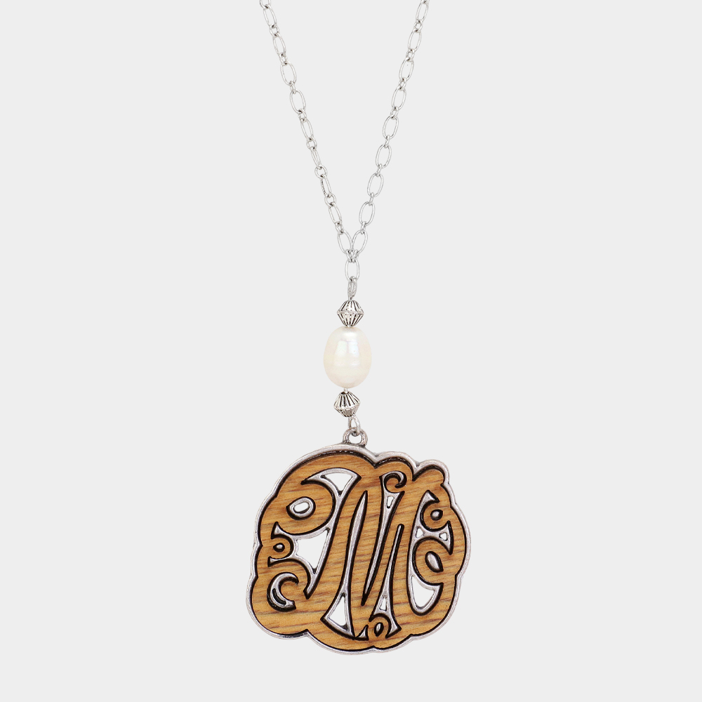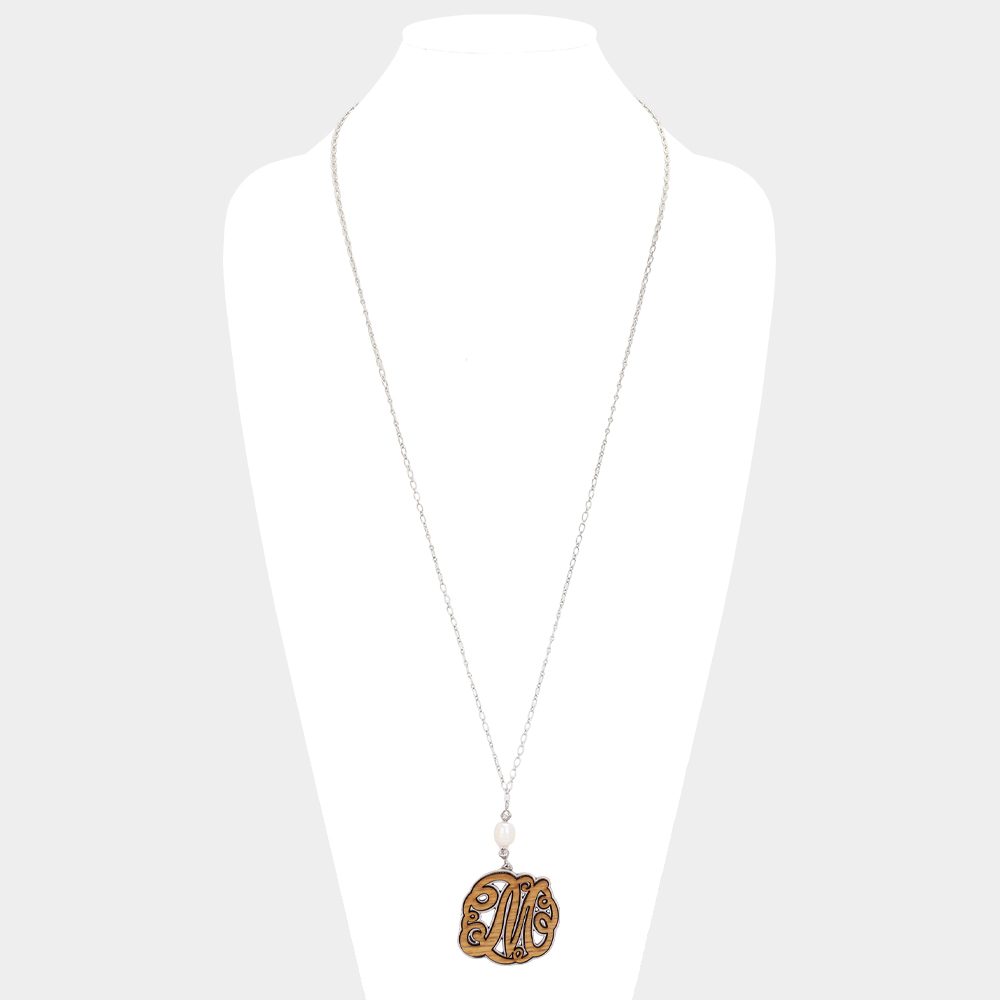 -V- Initial Monogram Pearl Charm Bangle Bracelet