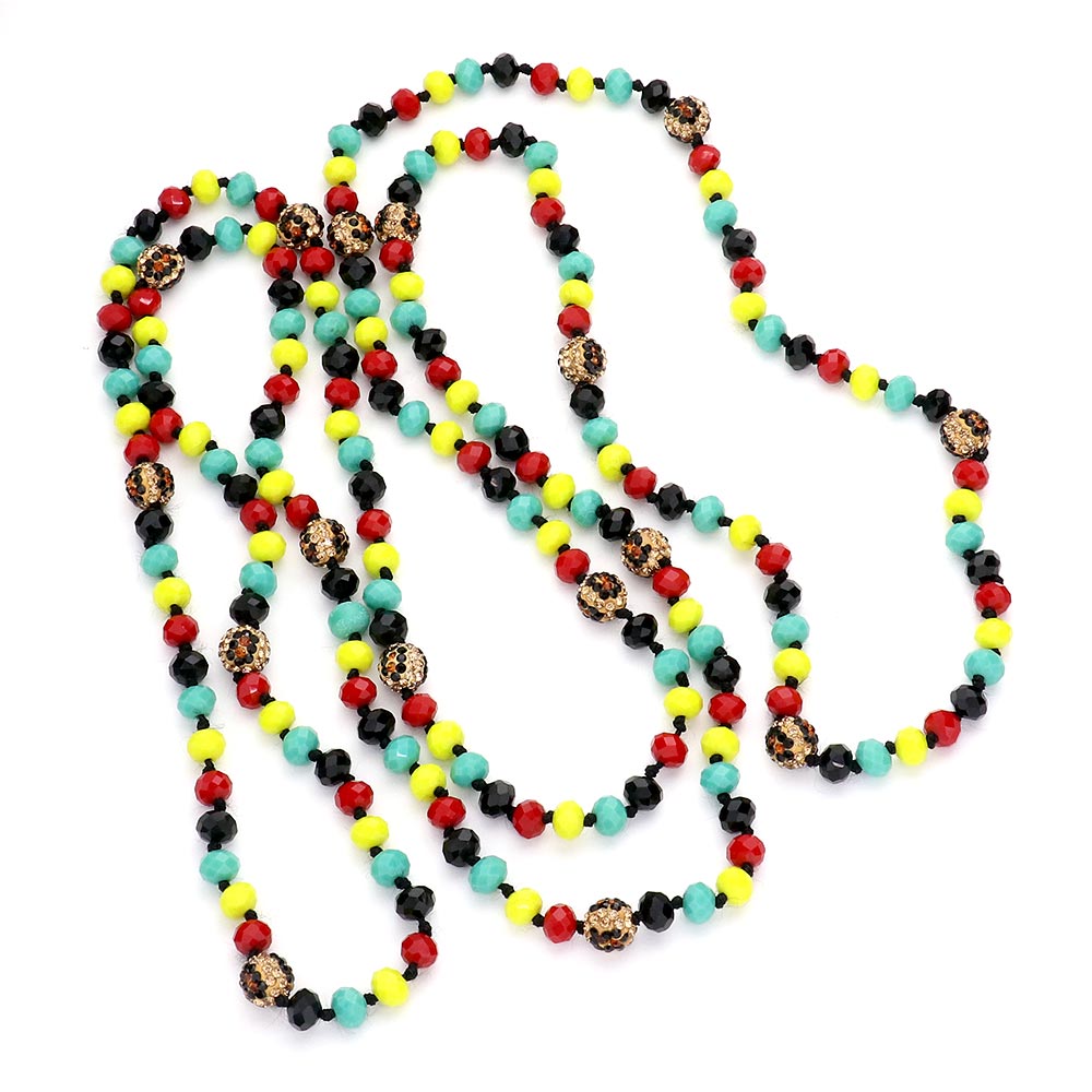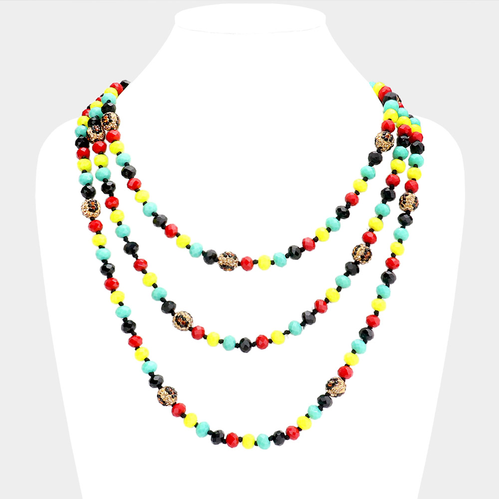 Leopard Pattern Shamballa Ball Accented Faceted Bead Long Necklace