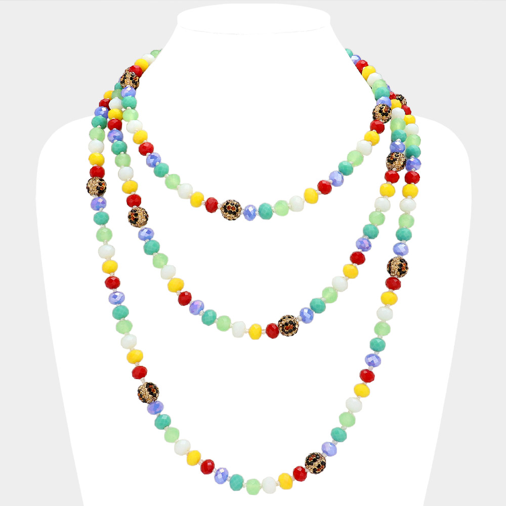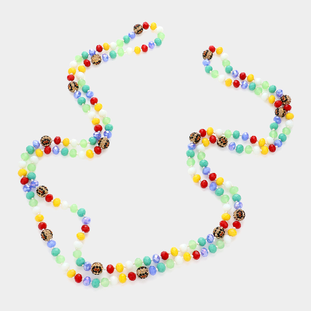Leopard Pattern Shamballa Ball Accented Faceted Bead Long Necklace