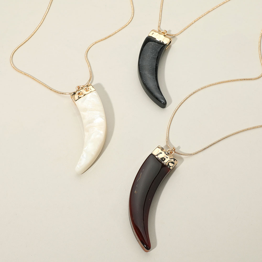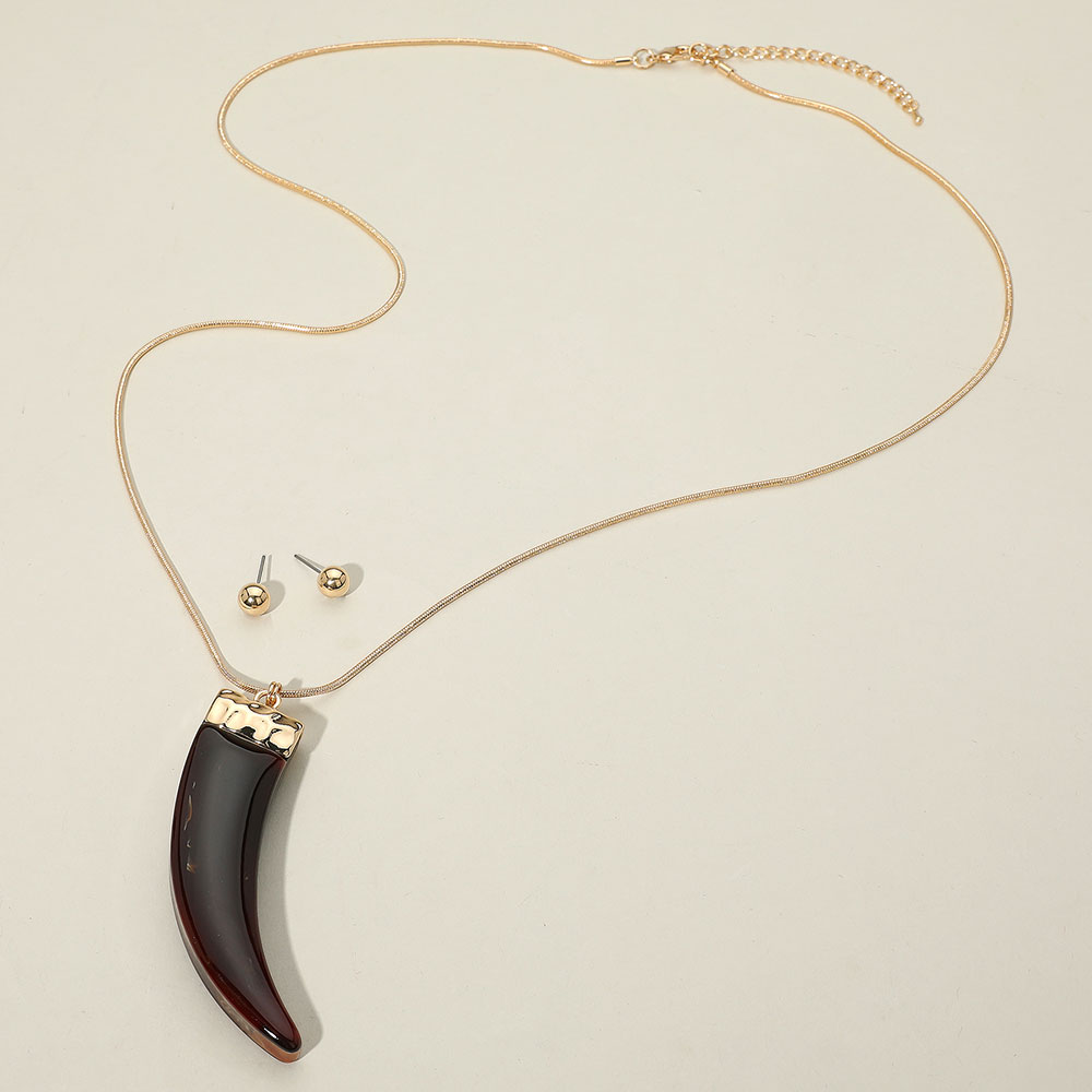 Details • Necklace Size : 33" + 3.5" L • Pendant Size : 0.8" X 3.5" • Earrings Size : 0.25" L • Sleek necklace featuring a horn-shaped pendant paired with simple stud earrings. A minimalist set perfect for adding a bold accent to everyday or evening wear. Versatile and stylish design. • Lead and Nickel Compliant