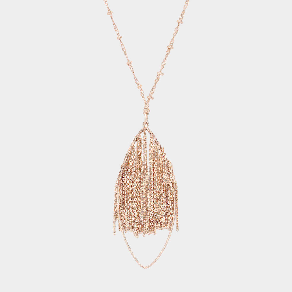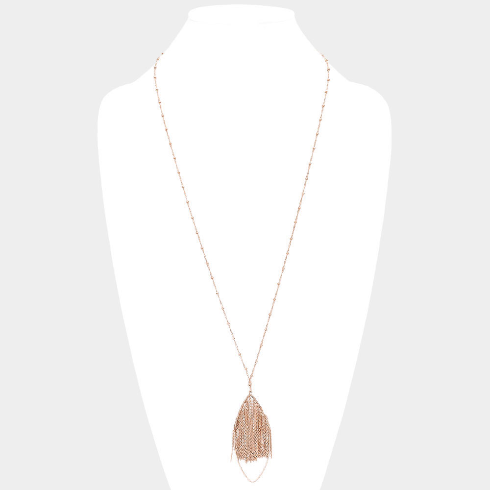 Metal Chain Fringe Teardrop Hoop Pendant Long Necklace