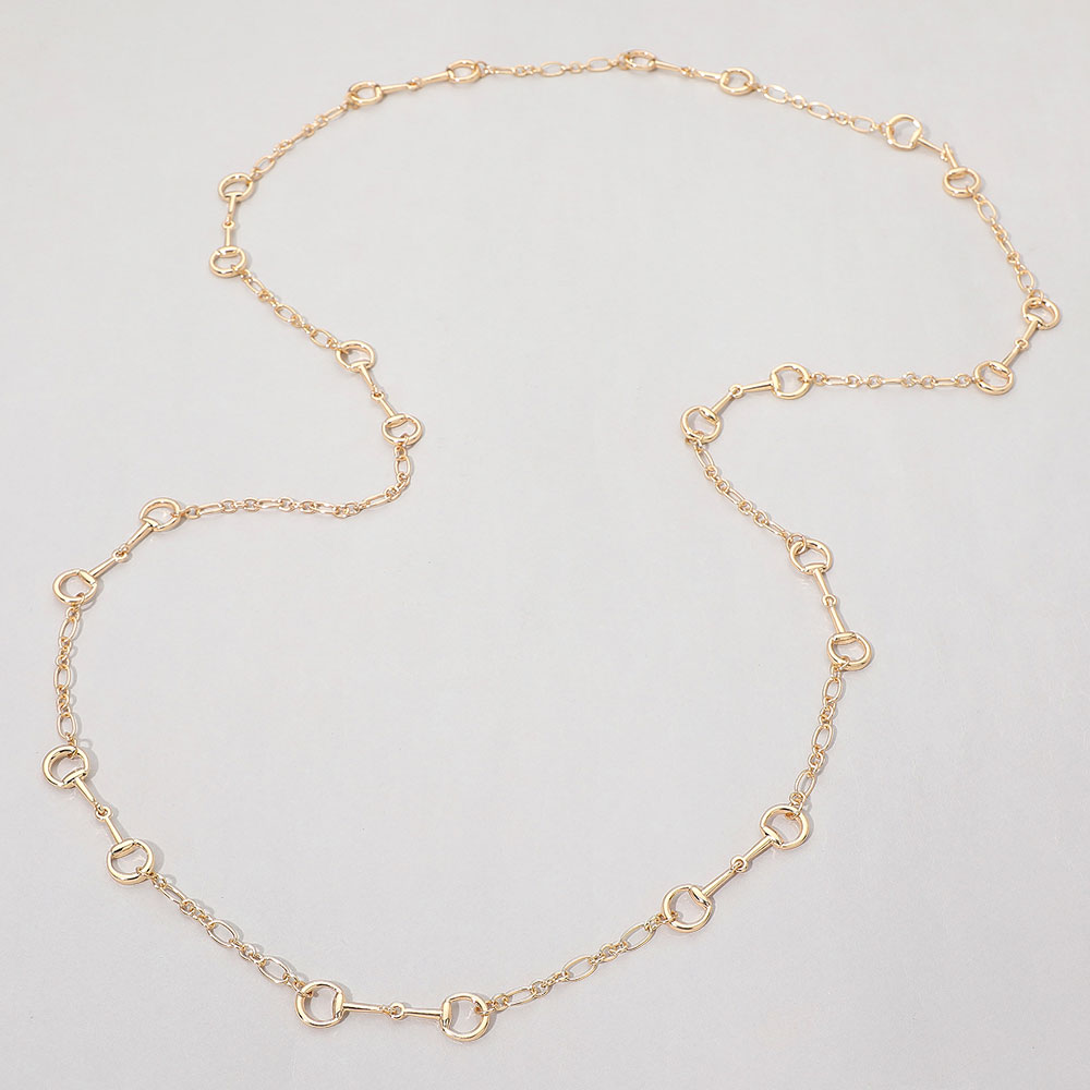 Details • Necklace Size : 38" L • Decor Size : 0.4" L • Sleek horsebit link chain necklace featuring a refined pattern that adds subtle statement appeal to any outfit. Designed for easy layering or solo wear, its adjustable length offers a comfortable fit for daily styling, special occasions, and effortless gifting across all seasons. • Lead and Nickel Compliant