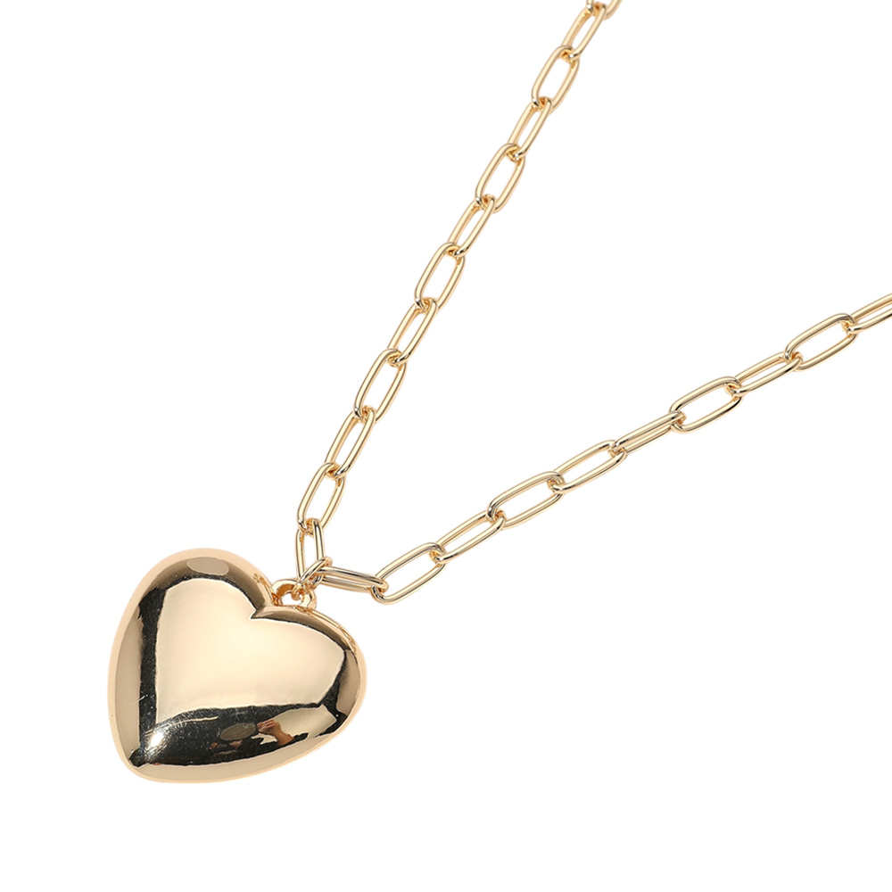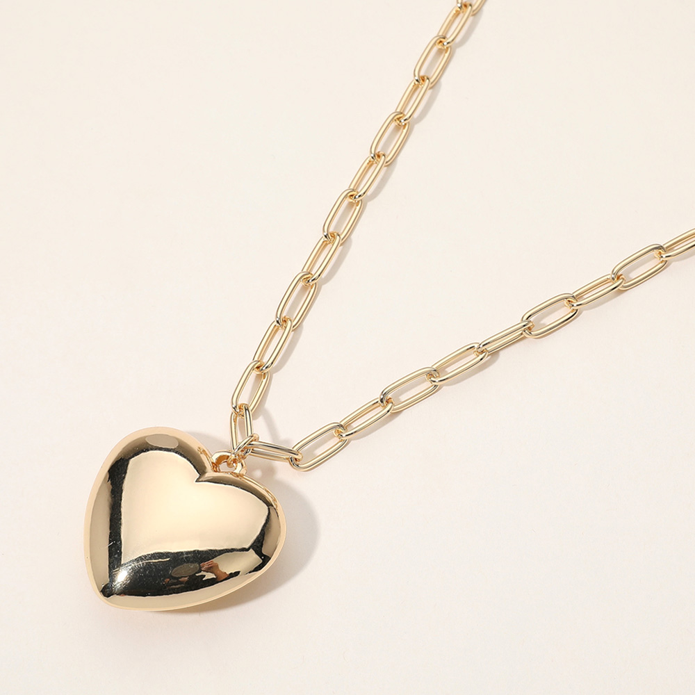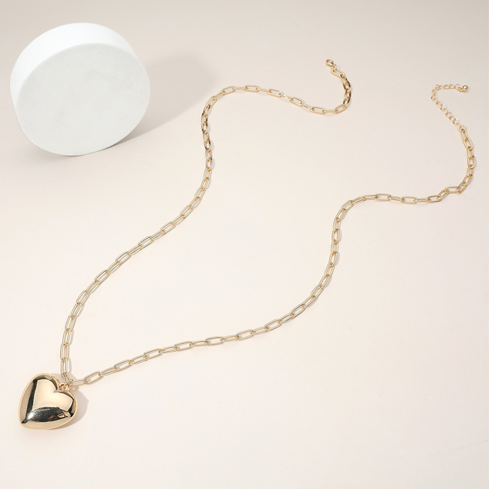 Metal Puffy Heart Pendant Paperclip Chain Long Necklace