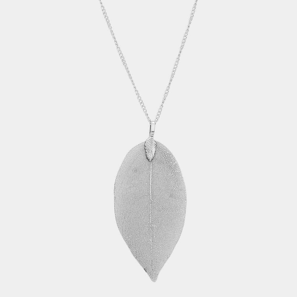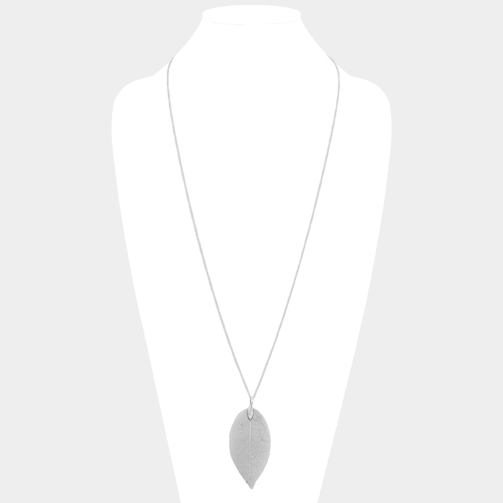 Natural Dipped Filigree Leaf Pendant Long Necklace