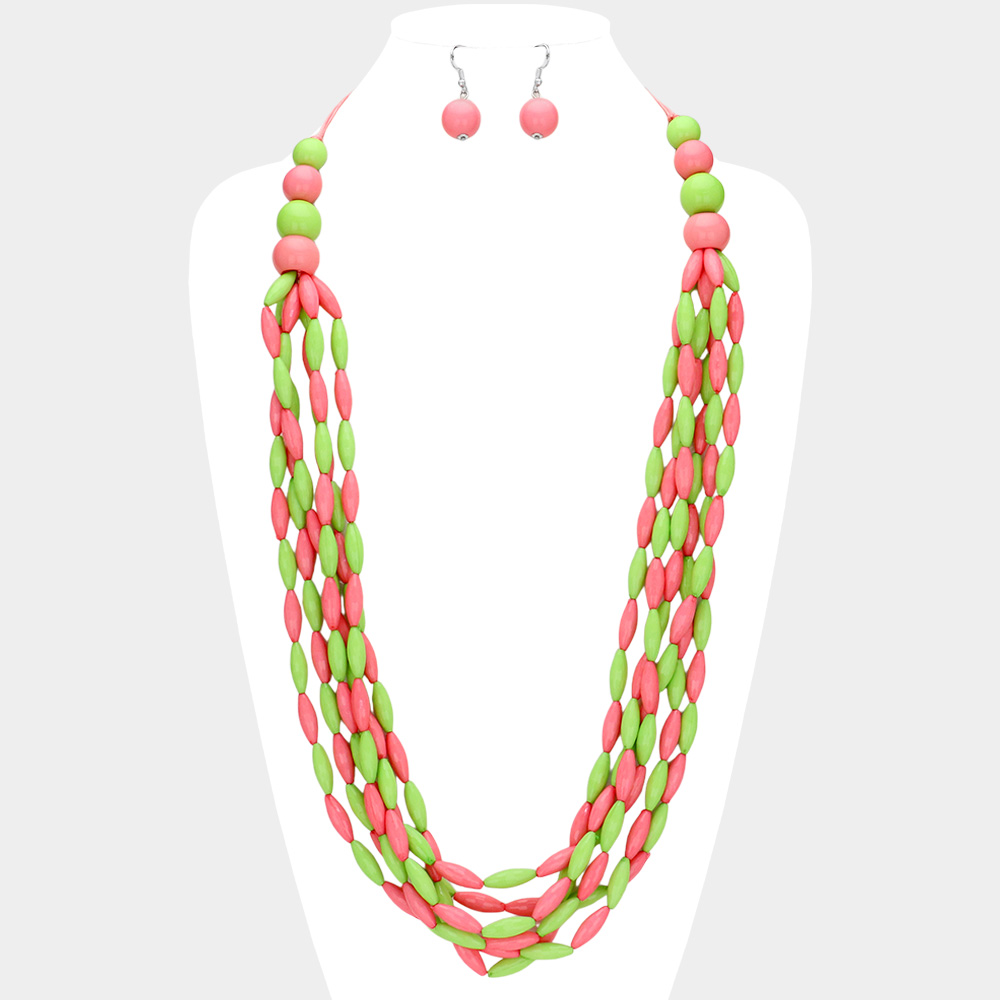 Oval Stone Accented V Shaped Rhinestone Necklace Clip on Earring Set