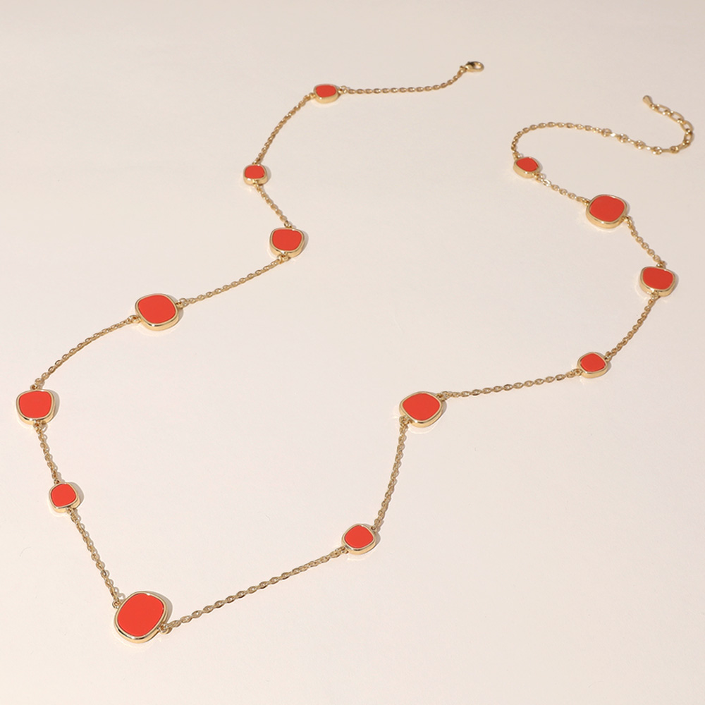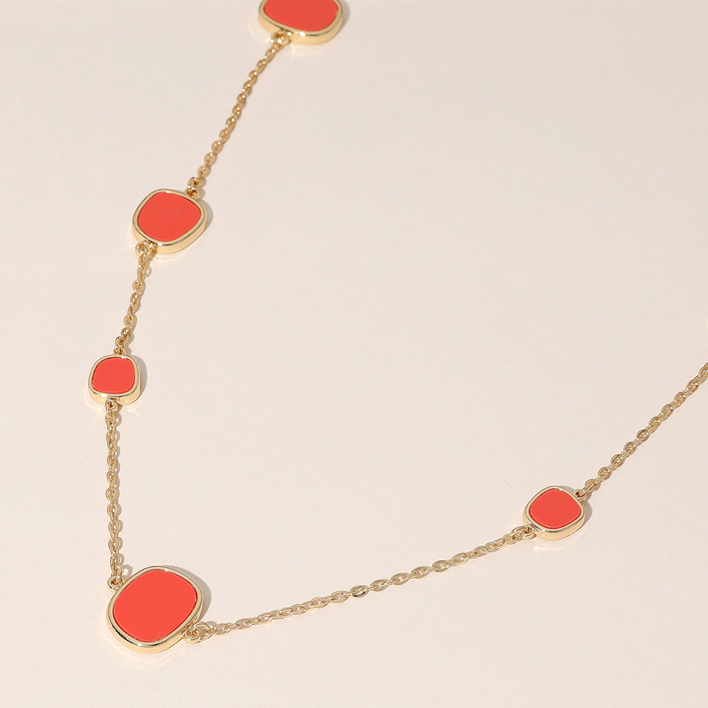 Details • Necklace Size : 34.5" + 3.5" L • Decor Size : 0.75" L • Elegant station necklace featuring bold geometric accents linked by a delicate chain. A contemporary accessory ideal for layering or wearing solo to elevate everyday and formal looks with minimal effort. • Lead and Nickel Compliant