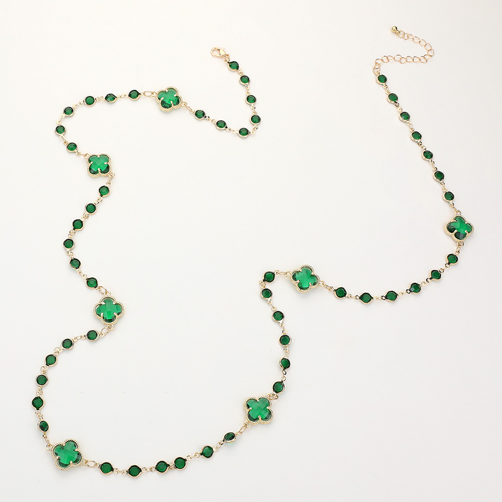 Stone Paved Mother Of Pearl Quatrefoil Station Necklace