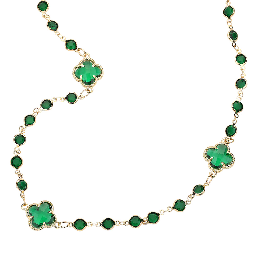 Gold Dipped CZ Quatrefoil Pendant Station Necklace