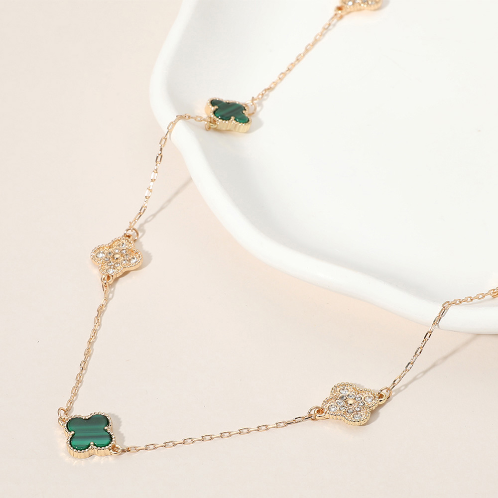 • Chic and delicate necklace featuring quatrefoil-inspired pendants with shimmering accents. A perfect accessory for everyday elegance or refined occasions. Lightweight and timeless in design.
