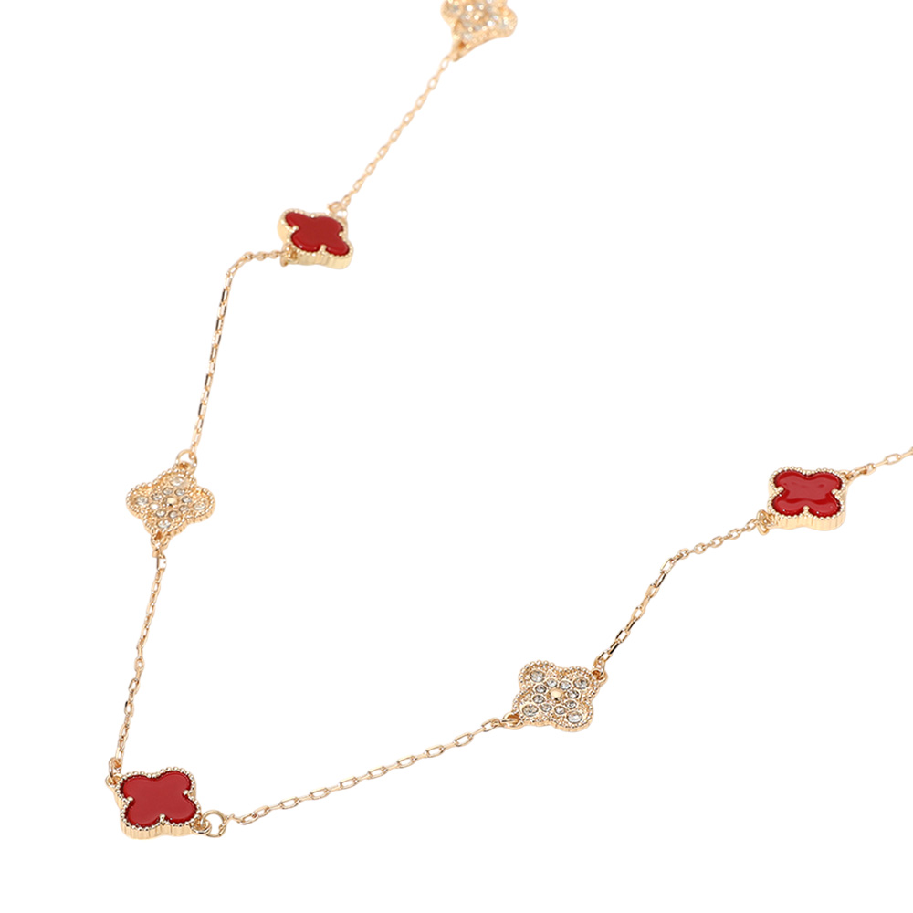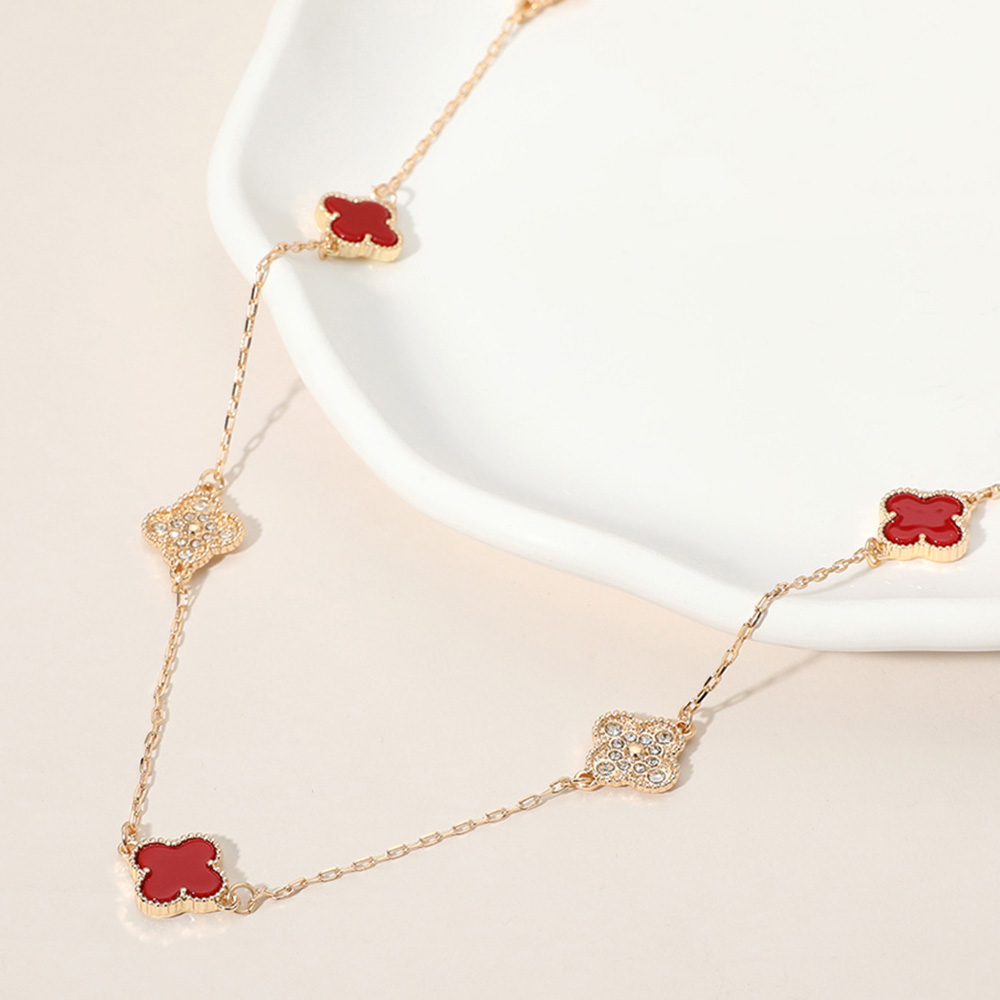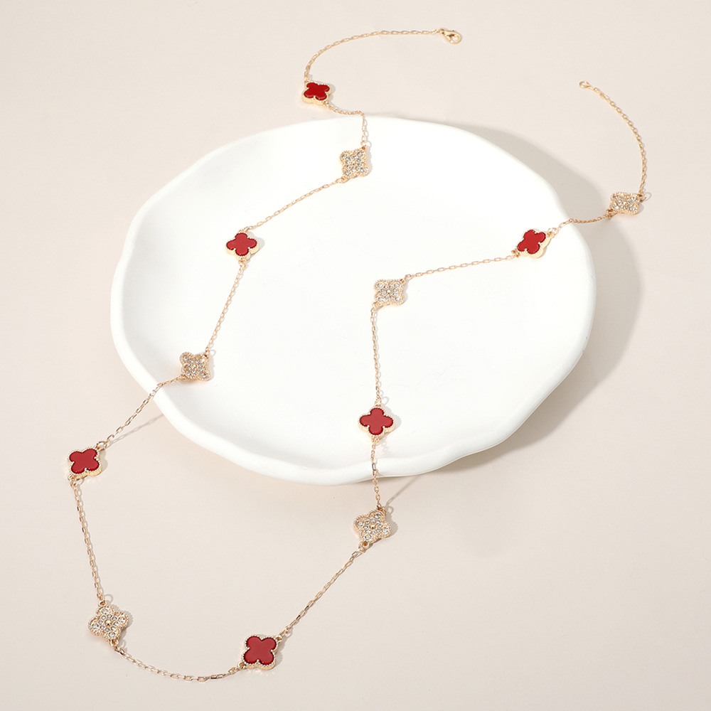 Details • Necklace Size : 34" + 3.25" L • Decor Size : 0.6" L • Chic and delicate necklace featuring quatrefoil-inspired pendants with shimmering accents. A perfect accessory for everyday elegance or refined occasions. Lightweight and timeless in design. • Lead and Nickel Compliant