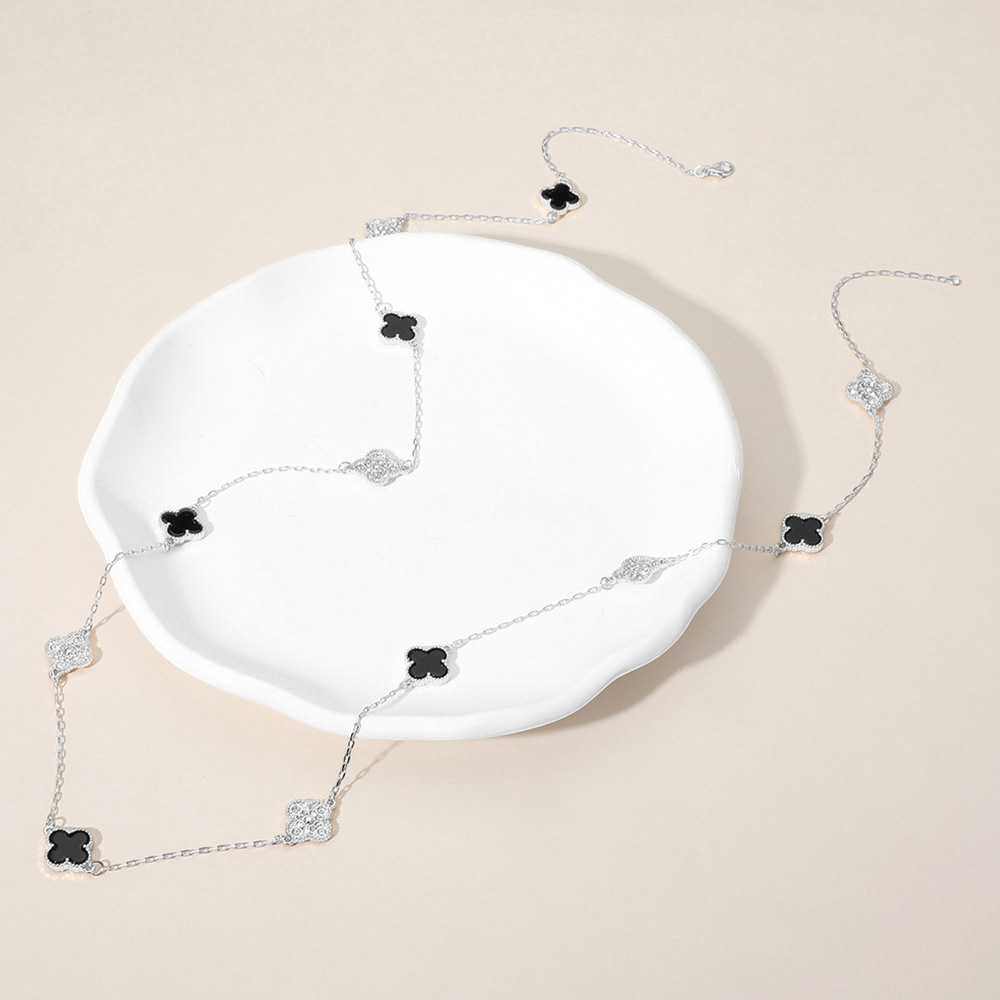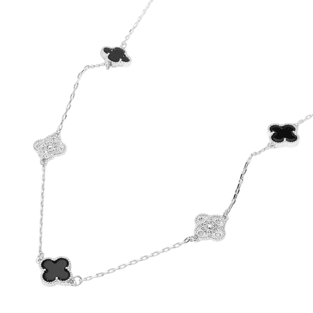 • Chic and delicate necklace featuring quatrefoil-inspired pendants with shimmering accents. A perfect accessory for everyday elegance or refined occasions. Lightweight and timeless in design.