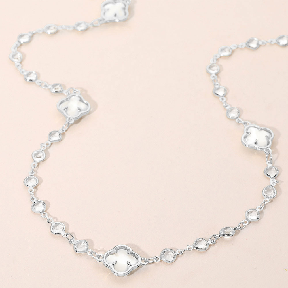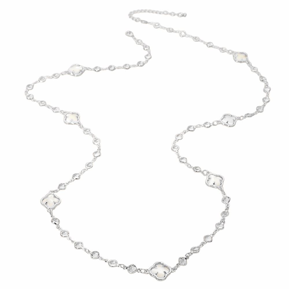 • Add a touch of elegance with this quatrefoil station necklace featuring delicate gemstone accents and refined detailing. Perfect for layering or wearing solo, this versatile piece brings timeless sophistication and charm to both everyday looks and special occasions.
