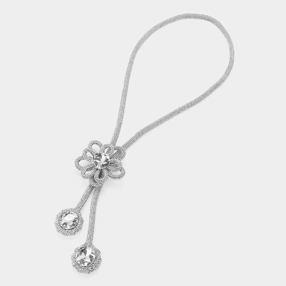 Round Stone Pointed Bling Studded Flower Pendant Long Necklace