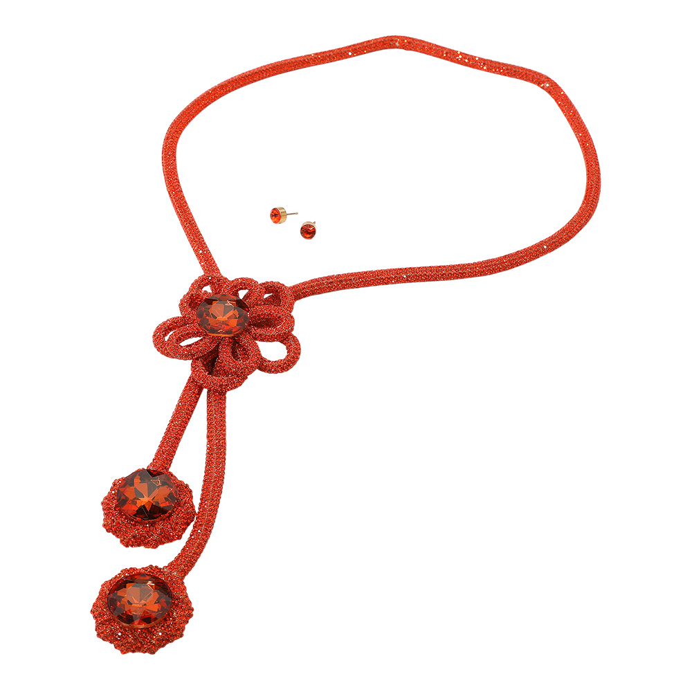 Round Stone Pointed Bling Studded Flower Pendant Long Necklace Round Stone Pointed Bling Studded Flower Pendant Long Necklace Round Stone Pointed Bling Studded Flower Pendant Long Necklace