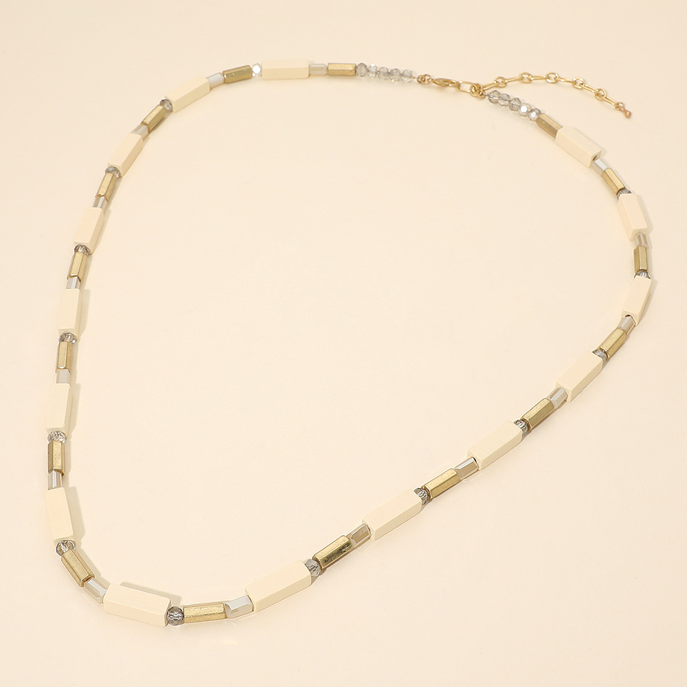 • Elevate your look with this structured wooden bead link necklace featuring alternating geometric accents and a sleek, minimalist profile. Designed for effortless layering or solo wear, it adds modern polish to everyday outfits and refined style for evening ensembles.
