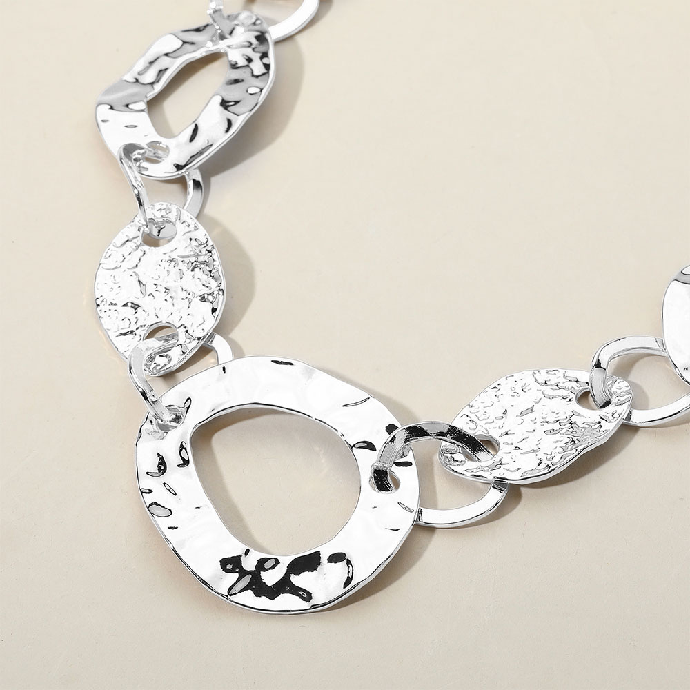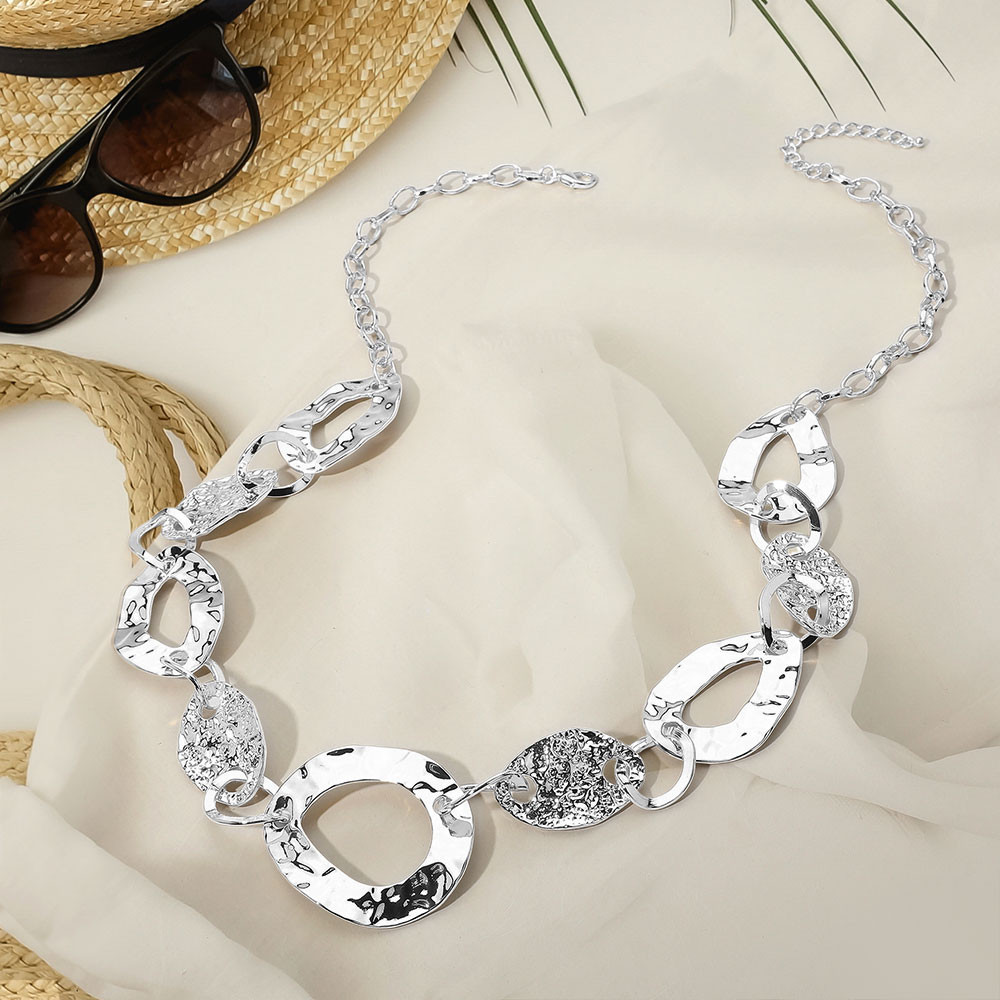 Details • Necklace Size : 34" + 3" L • Decor Size : 2.2" L • Make a bold statement with this chunky long necklace featuring hammered textured links in an eye-catching design. The adjustable chain ensures a perfect fit, making it ideal for elevating casual outfits or completing your look for special occasions or events. • Lead and Nickel Compliant