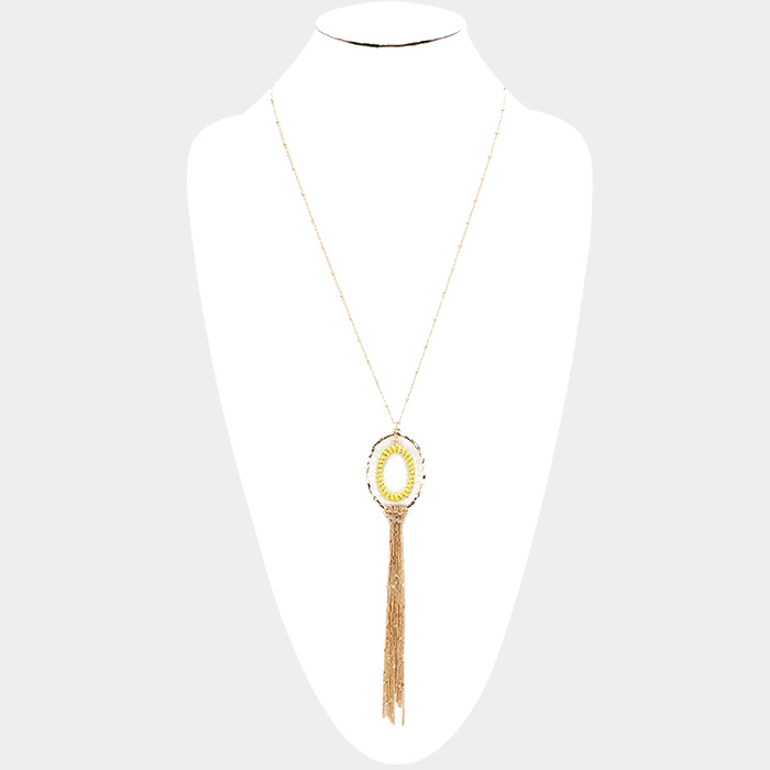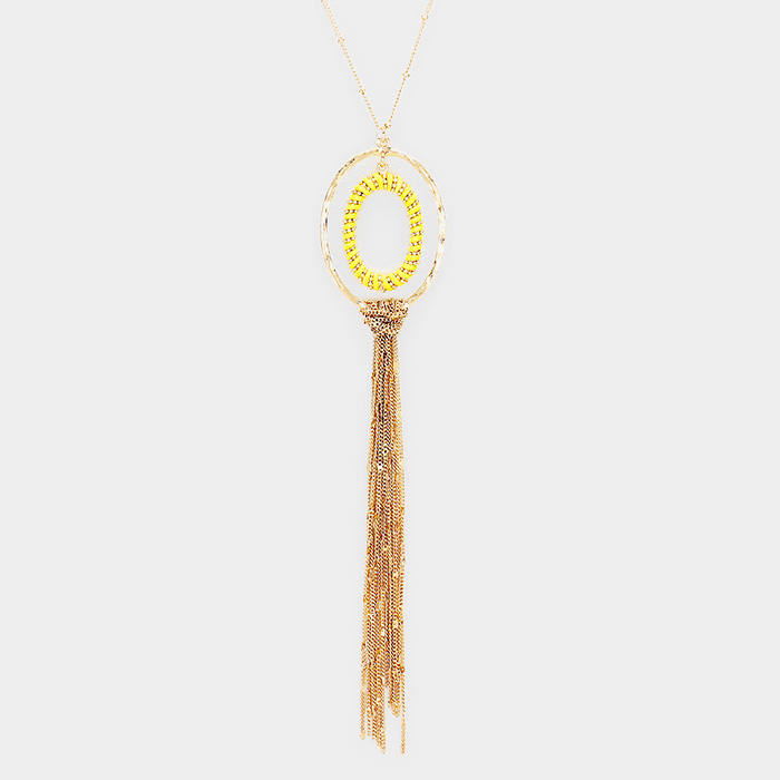 Thread Wrapped Oval Hoop Long Drop Chain Tassel Necklace