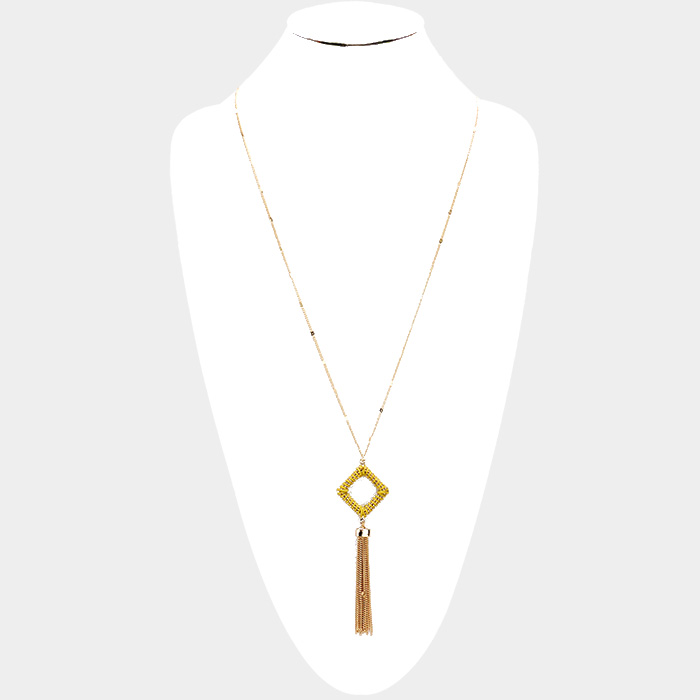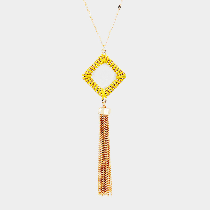 Thread Wrapped Square Hoop Drop Chain Tassel Necklace