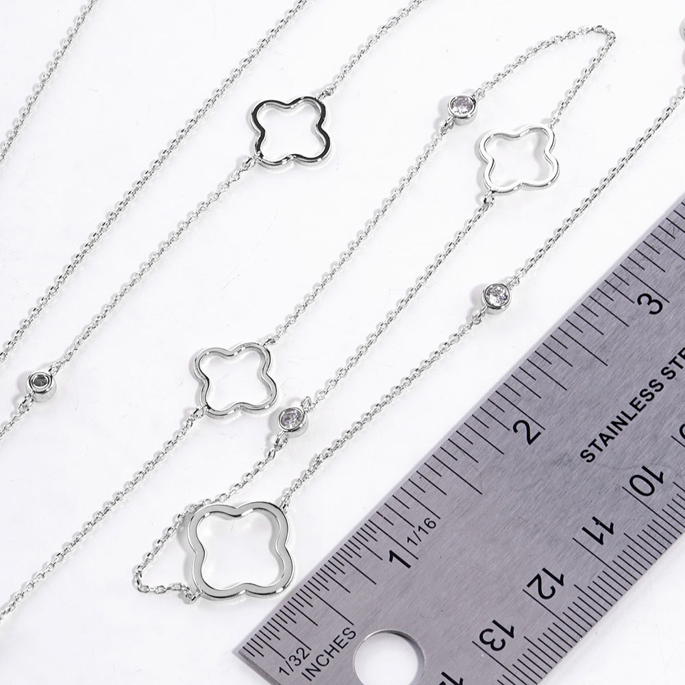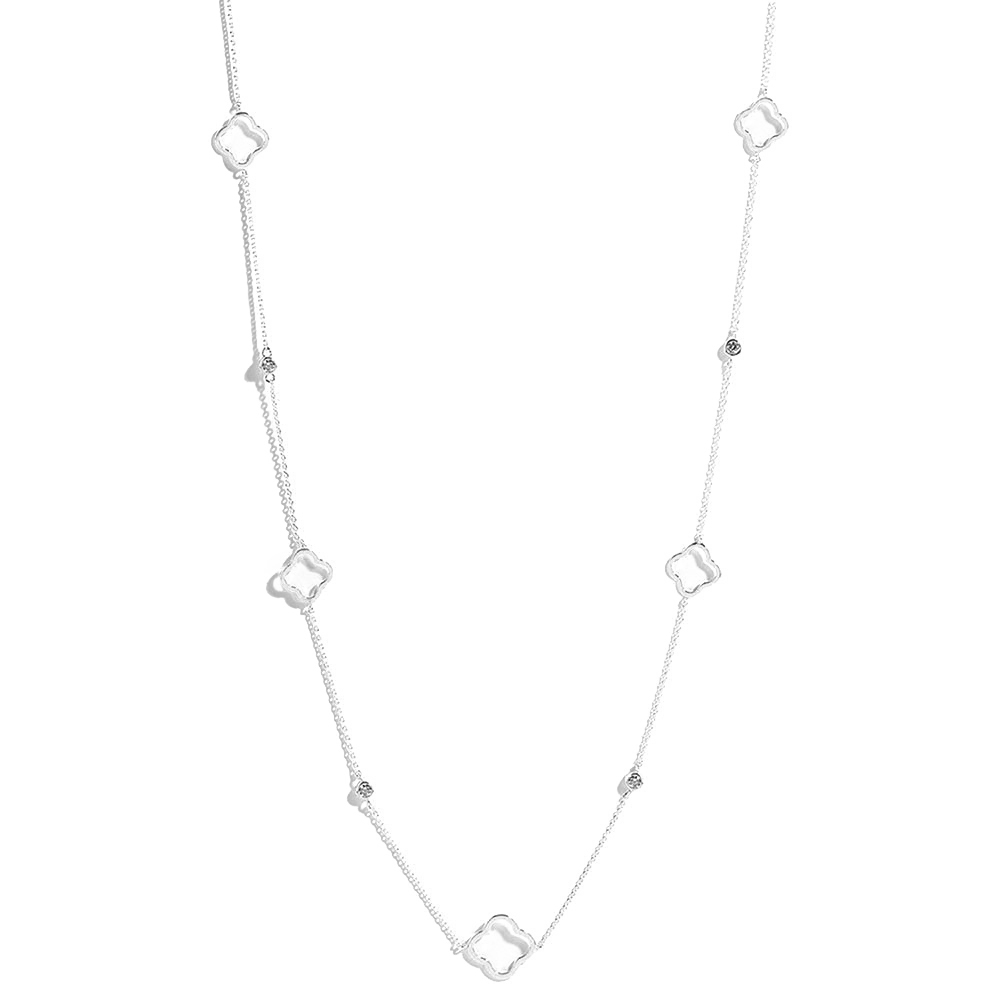 Gold Dipped Quatrefoil Round Stone Station Long Necklace