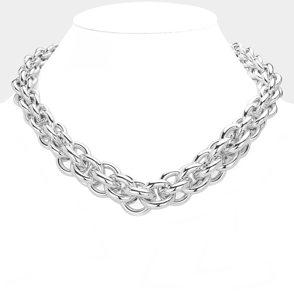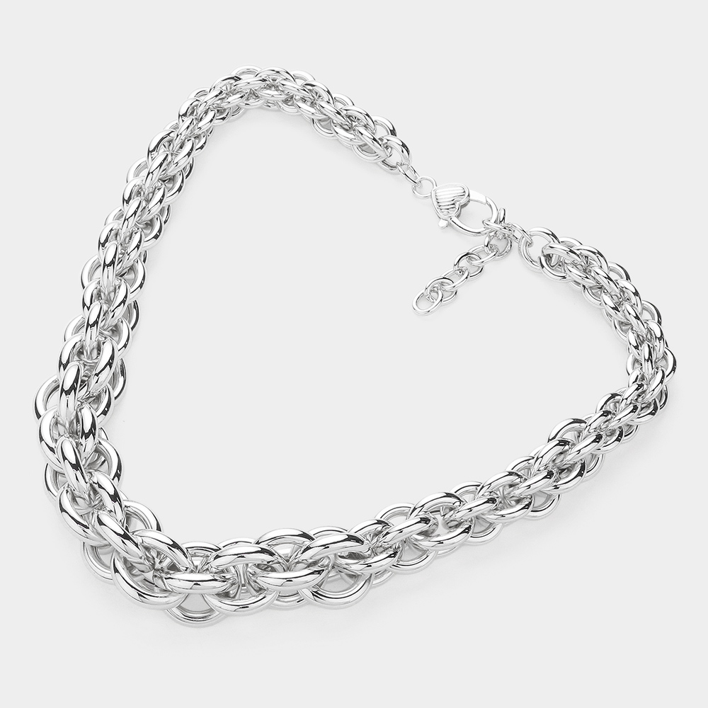Silver Dipped Double Quatrefoil Pendant Layered Necklace
