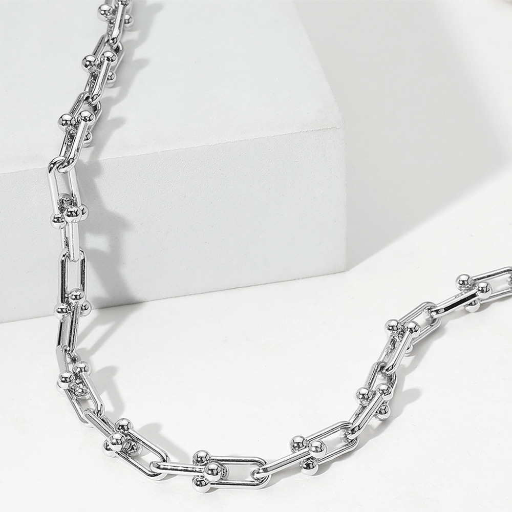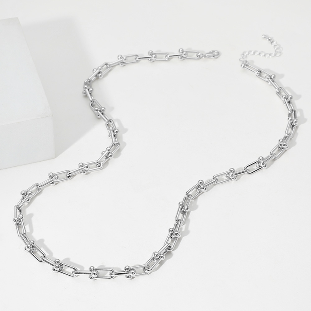Details • Necklace Size : 24" + 2.5" L • Decor Size : 0.3" L • A stylish necklace designed with elongated link chain detailing enhanced by small bead accents for a modern, textured look. Perfect for layering or standalone wear, this versatile chain adds a contemporary edge to both everyday and evening outfits effortlessly. • Gold Dipped