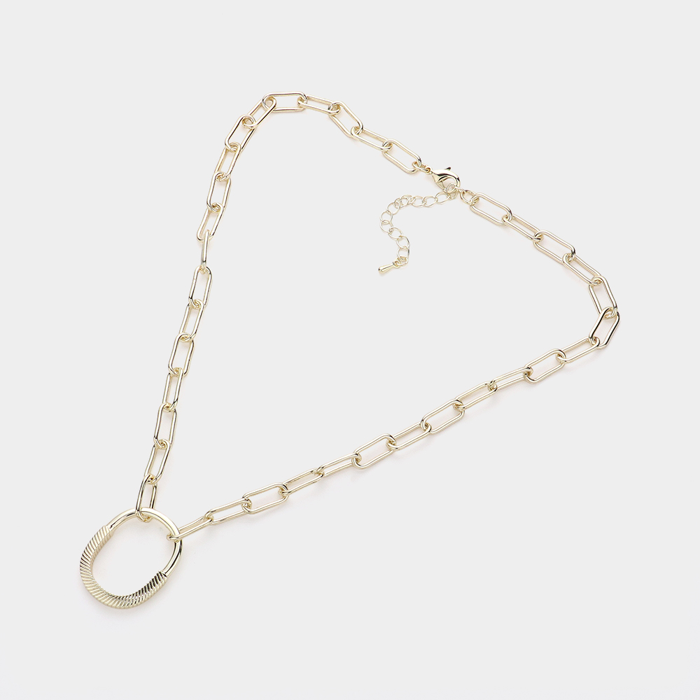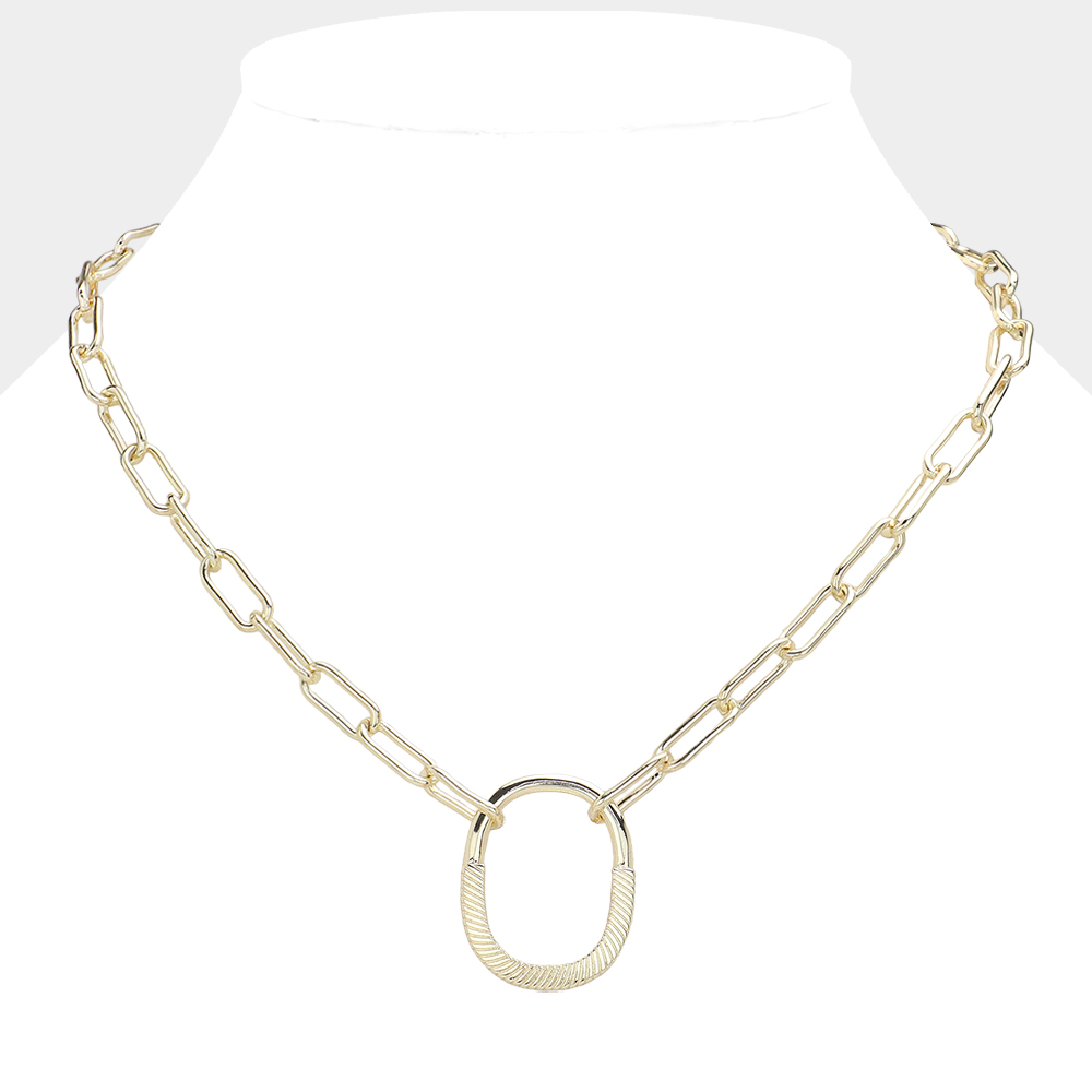 14K Gold Plated Lock Pendant Paper Clip Chain Necklace