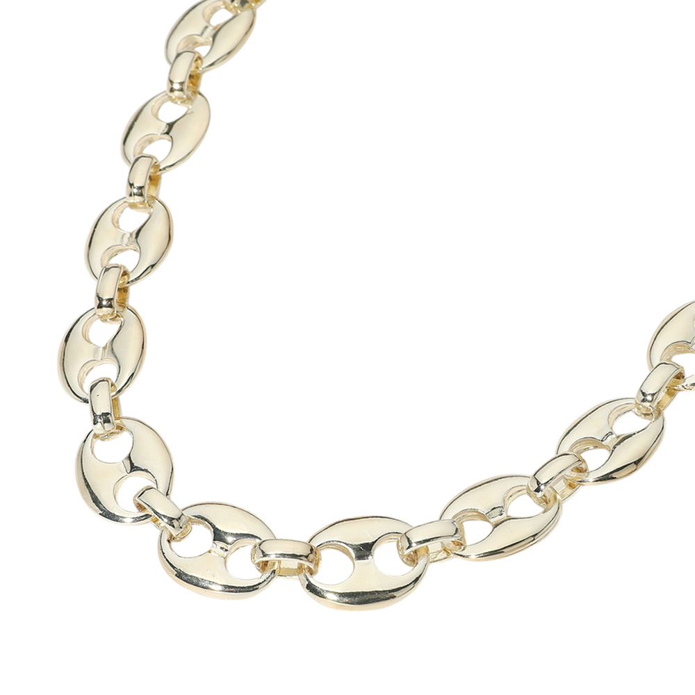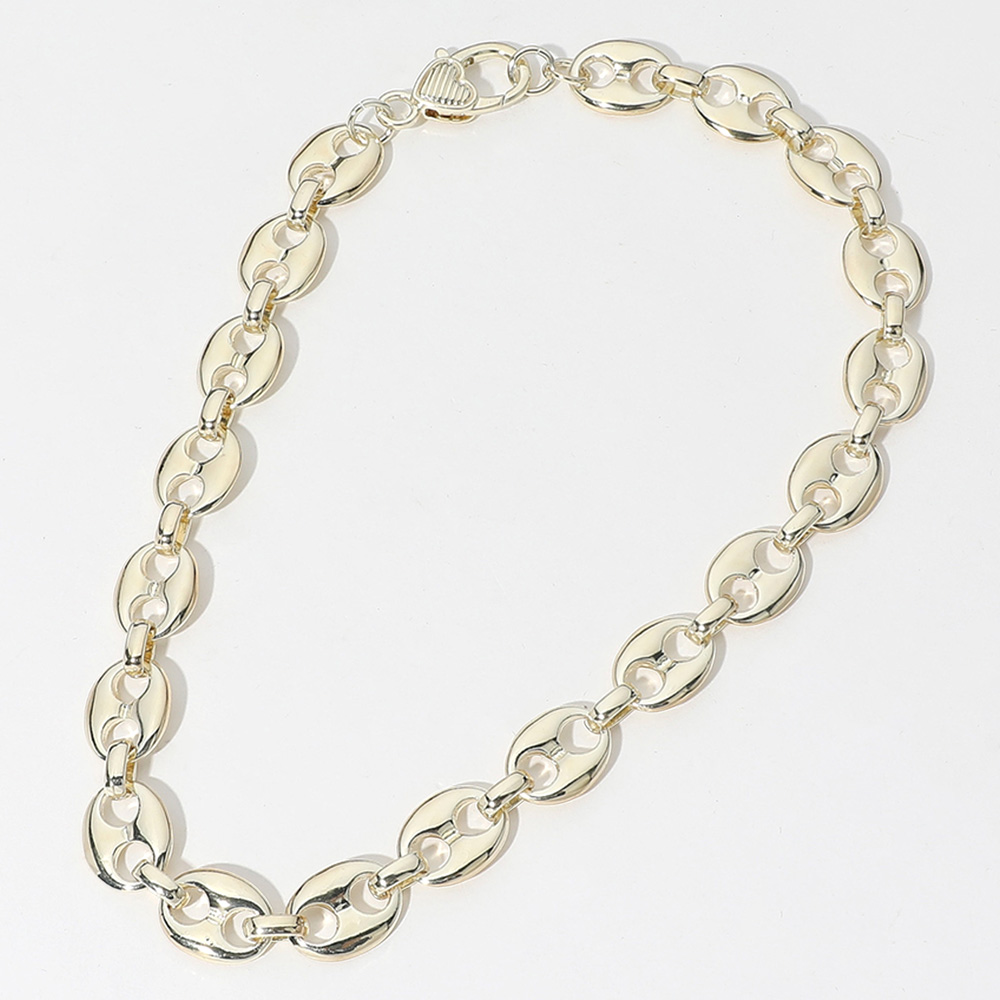 Details • Necklace Size : 16.5" + 0.25" L • Decor Size : 0.5" L • Elegant necklace featuring bold oval links with a high-shine finish. Its timeless design adds sophistication to any look, making it perfect for both casual and formal occasions. A versatile piece that complements any jewelry collection. • Gold Dipped