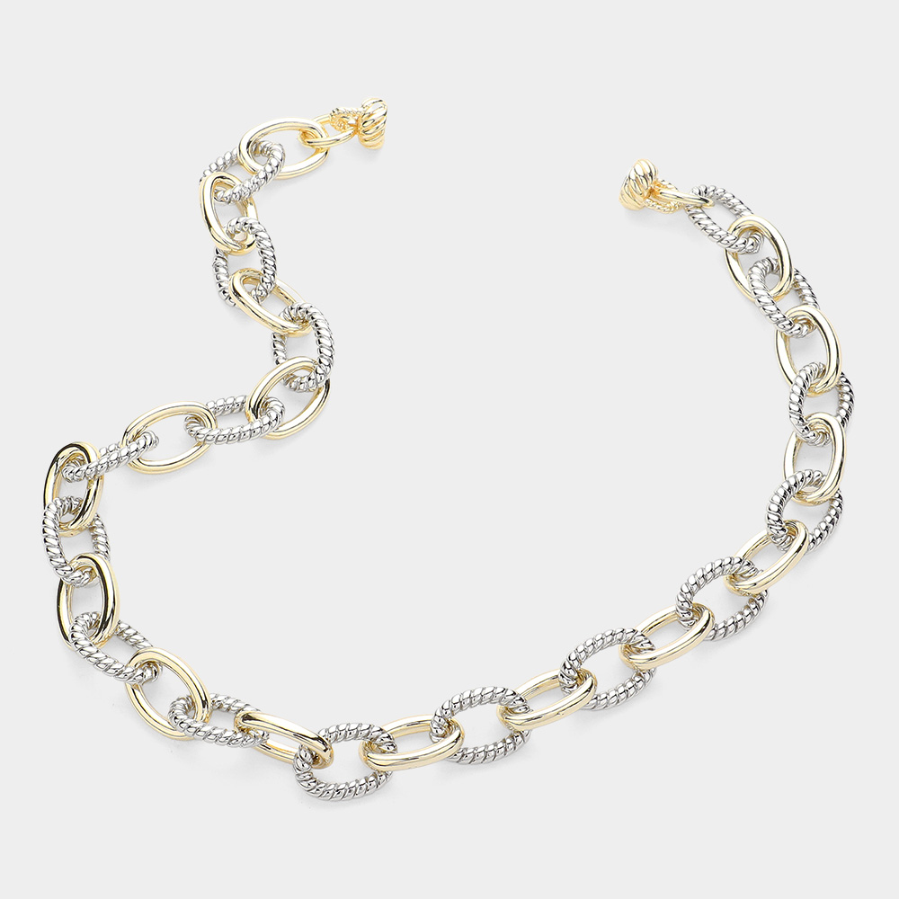 14K Gold Plated Two Tone Industrial Link Chain Necklace