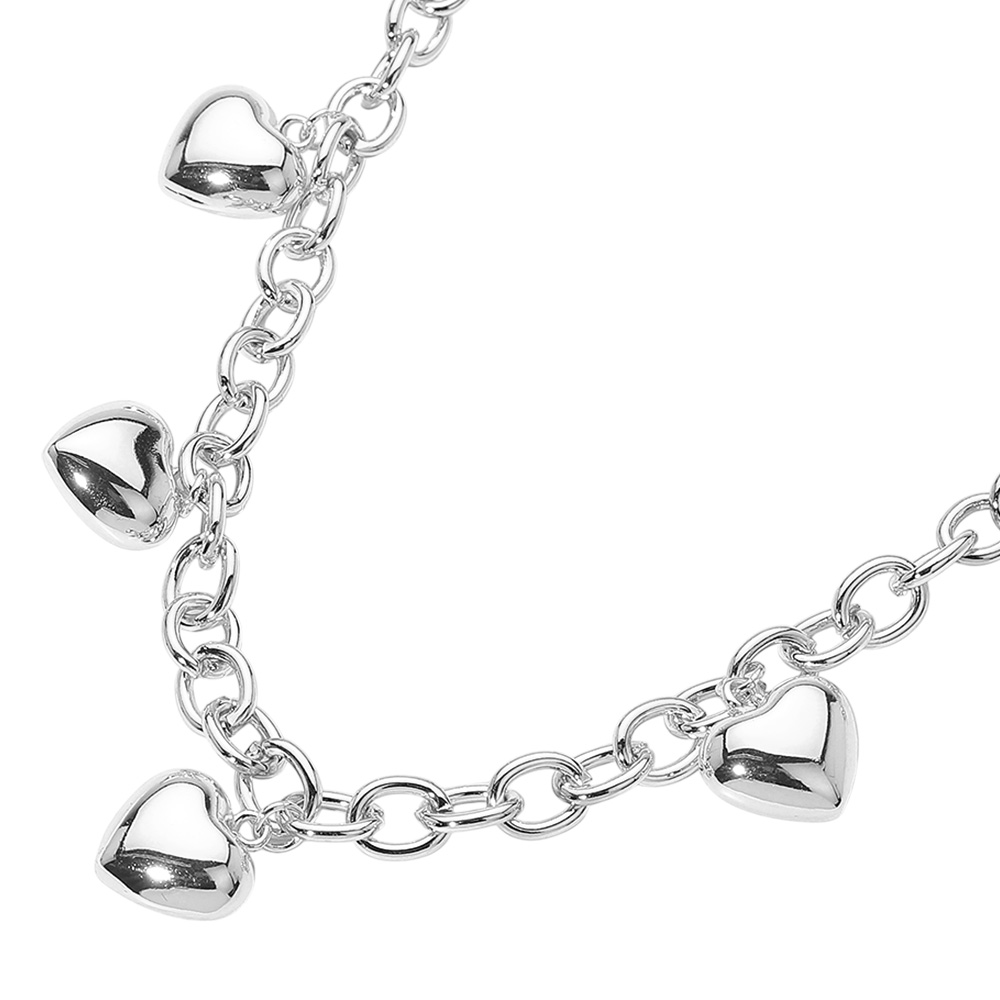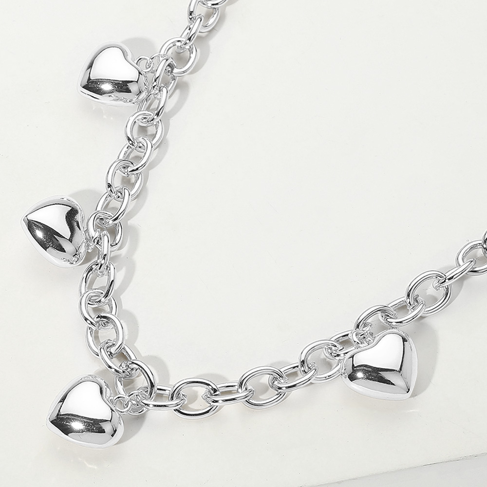 14K Gold Plated Puffy Heart Charm Station Chain Necklace