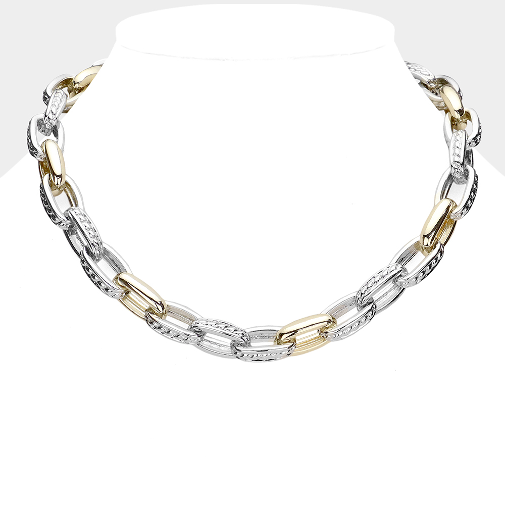 14K Gold Plated Two Tone Chunky Chain Magnetic Necklace