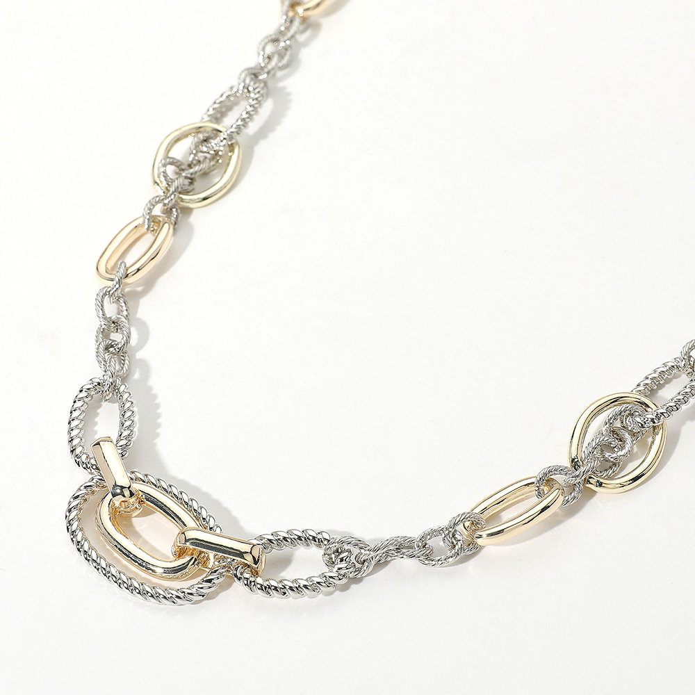 14K Gold Plated Two Tone Twisted Rope Oval Link Chain Necklace