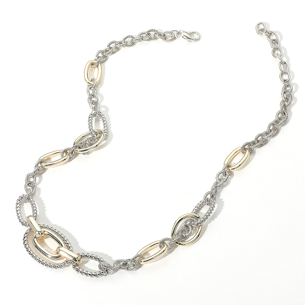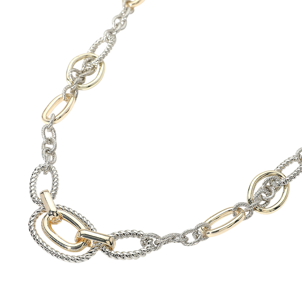 • Elegant chain necklace featuring a mix of textured oval and round links in alternating shapes. A unique layered look that adds dimension to any outfit.