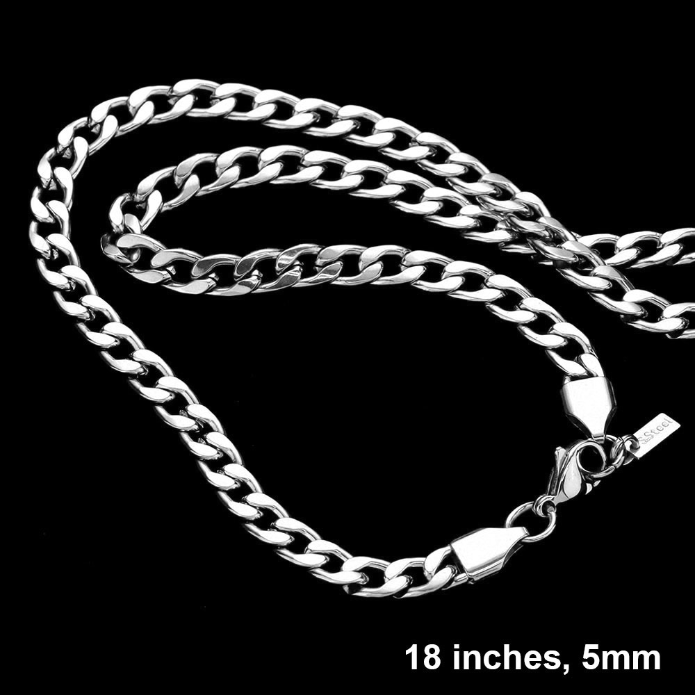 18 INCH, 5mm Stainless Steel Cuban Chain Necklace