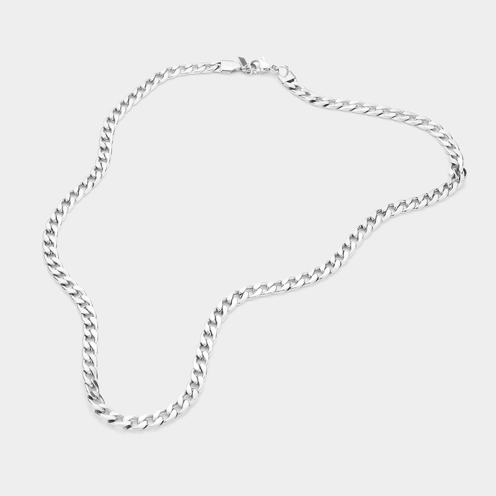 24 INCH, 5mm Stainless Steel Cuban Chain Necklace