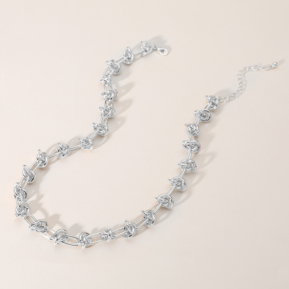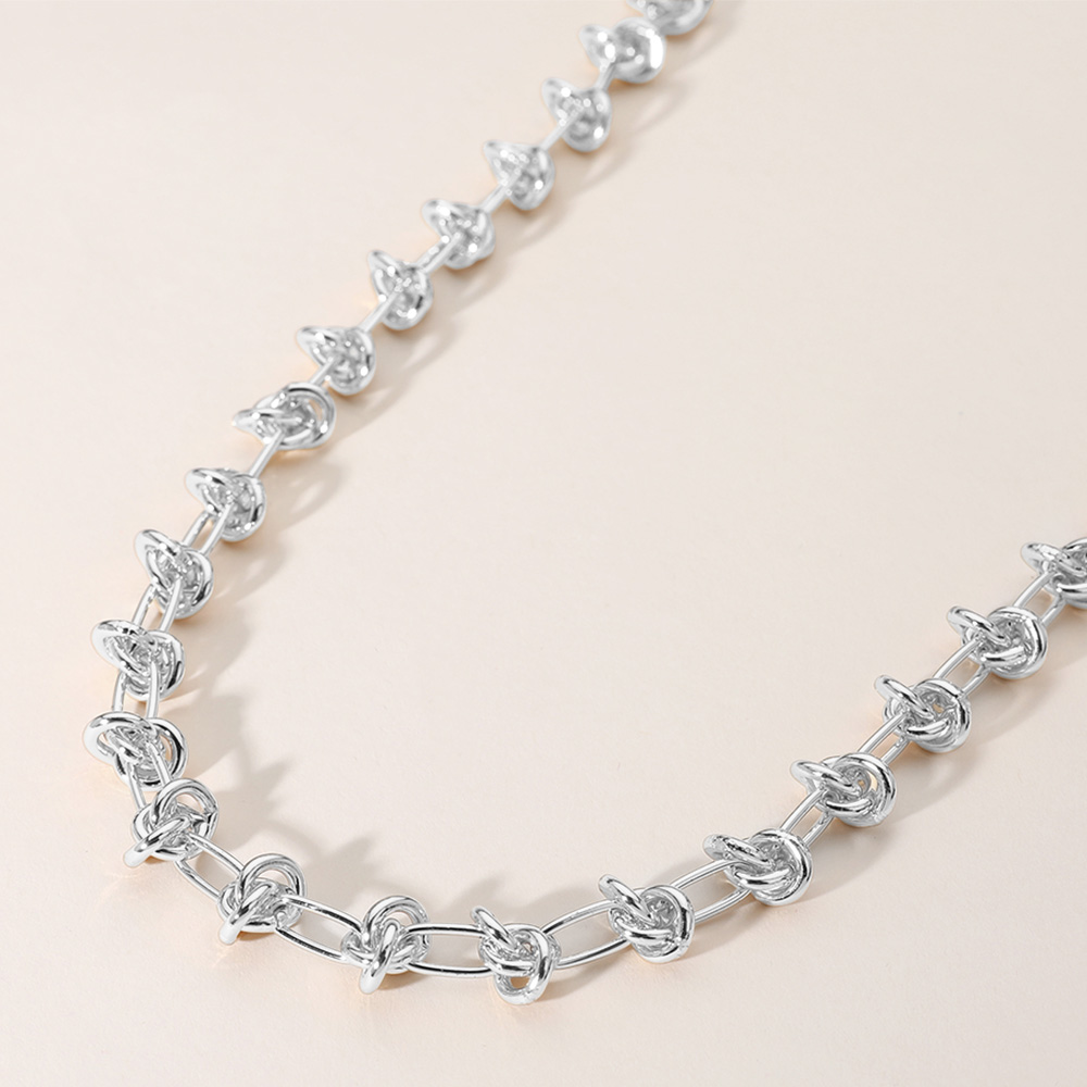 14K Gold Plated Two Tone Knot Link Chain Necklace
