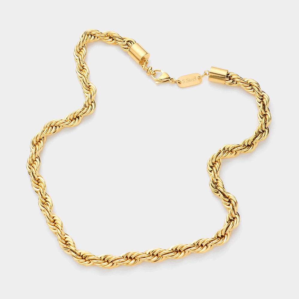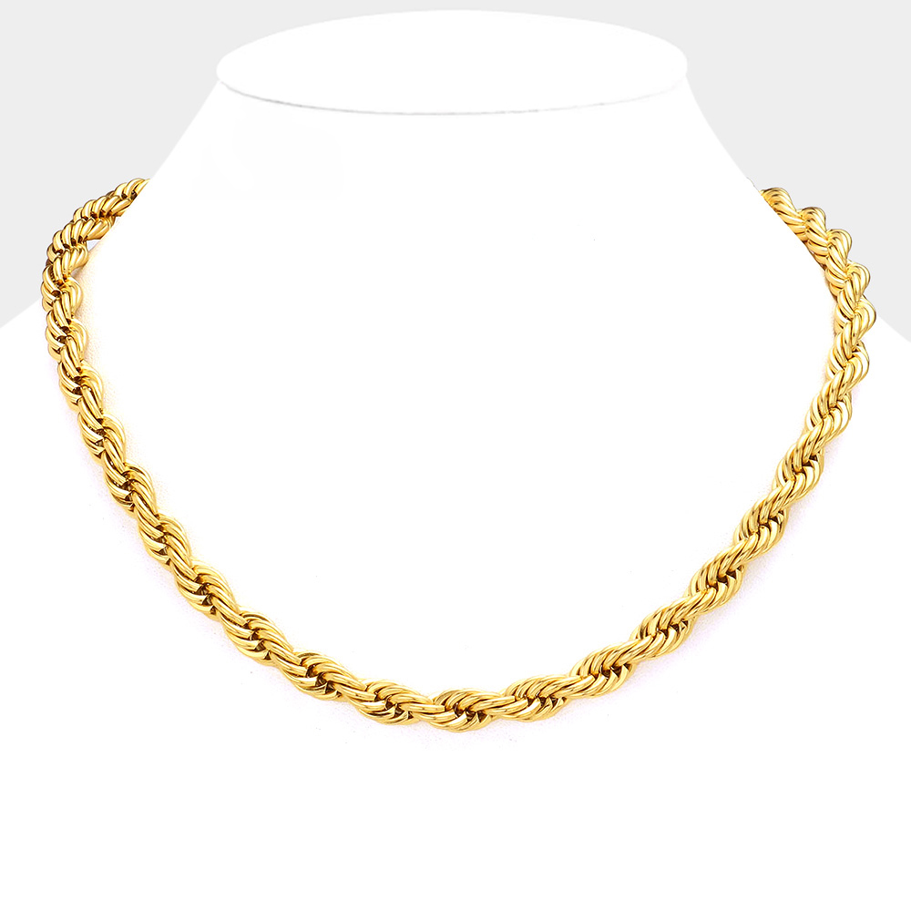 18K Gold Dipped Stainless Steel 18 Inch 8mm Rope Chain Necklace