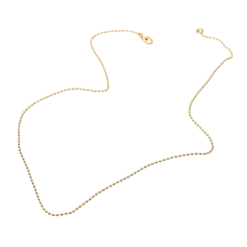 Details • Necklace Size : 18" L • Decor Size : 0.1" L (2mm) • Elegant bead chain necklace featuring small, polished round links that create a smooth and refined texture. A timeless minimalist piece perfect for layering or wearing solo, adding effortless shine to both casual and dressy looks. • Gold Filled • Lead and Nickel Compliant • Made In Brazil