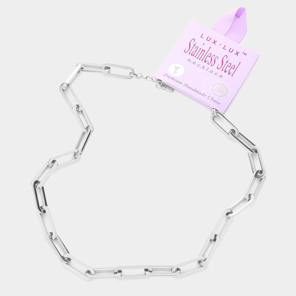 18K White Gold Dipped Stainless Steel Premium Handmade Chain Necklace