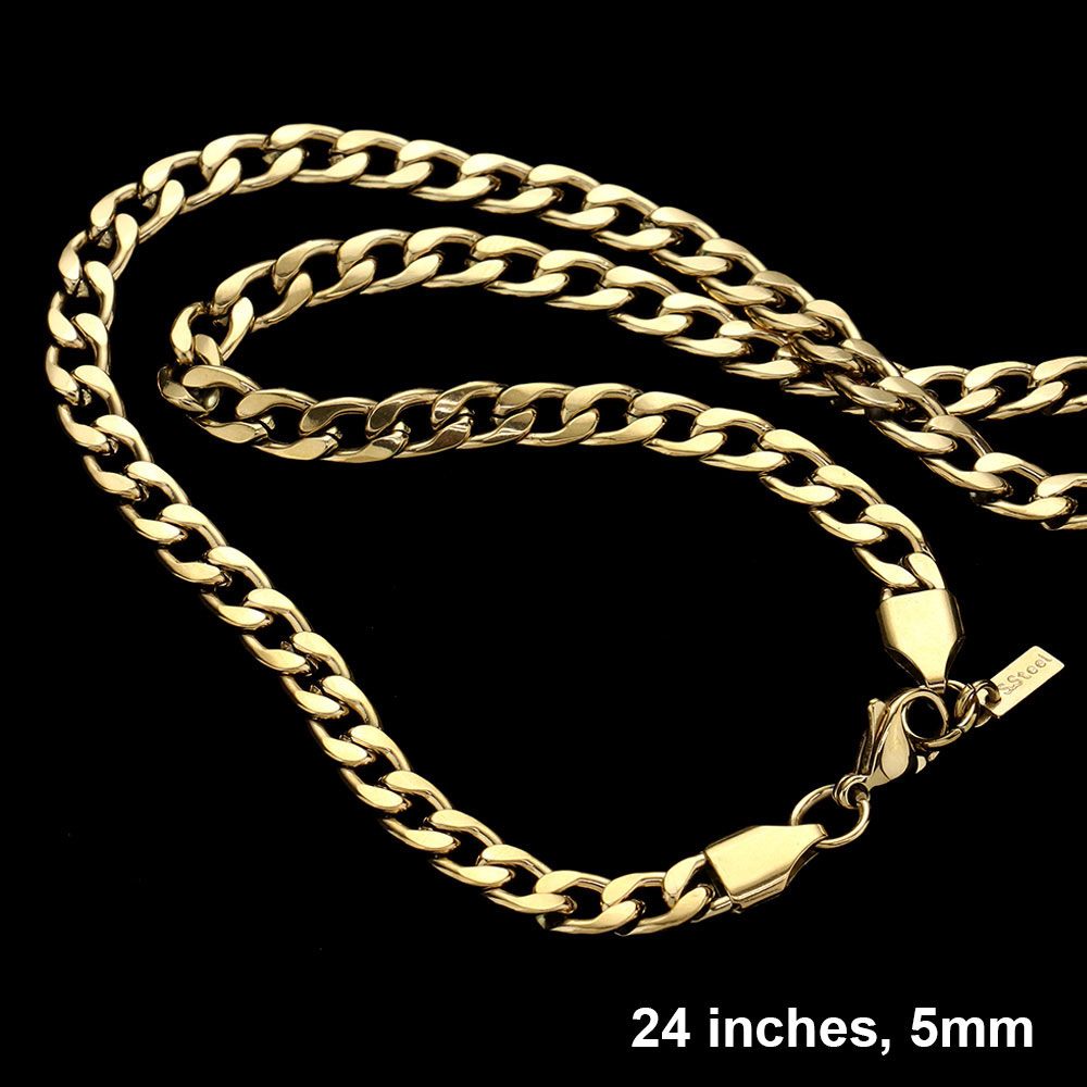24 INCH, 5mm Stainless Steel Cuban Chain Necklace