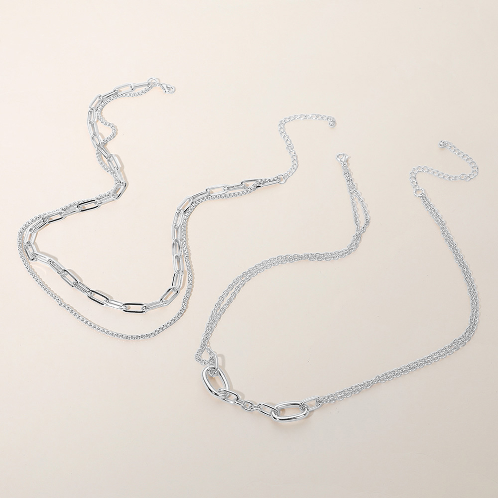 2PCS - Metal Link Paperclip Chain Layered Necklace 2PCS - Metal Link Paperclip Chain Layered Necklace 2PCS - Metal Link Paperclip Chain Layered Necklace