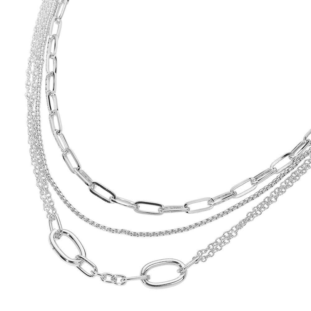 • Stylish layered chain necklace featuring mixed link designs for a bold yet elegant look. The multi-strand style adds texture and dimension, making it perfect for enhancing any casual or formal outfit with a touch of modern sophistication and effortless charm.