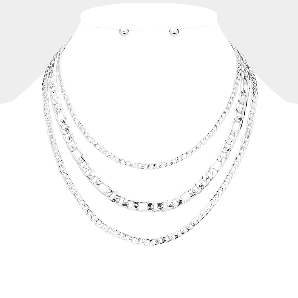 BLESSED White Gold Dipped Metal Message Pendant Station Necklace