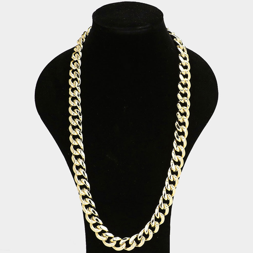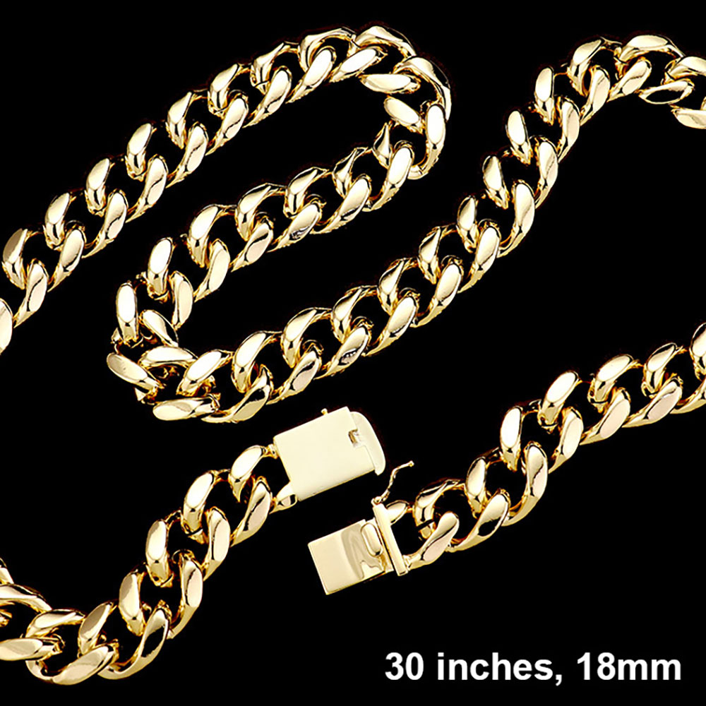 Details • Necklace Size : 30" L • Decor Size : 18mm • Box clasp with double safety locks • Unisex • Make a bold statement with this 30-inch, 18mm gold Cuban link chain. Featuring a secure box clasp and high-polish finish, it’s the perfect accessory for standout streetwear style. • Lead and Nickel Compliant • Made In Korea