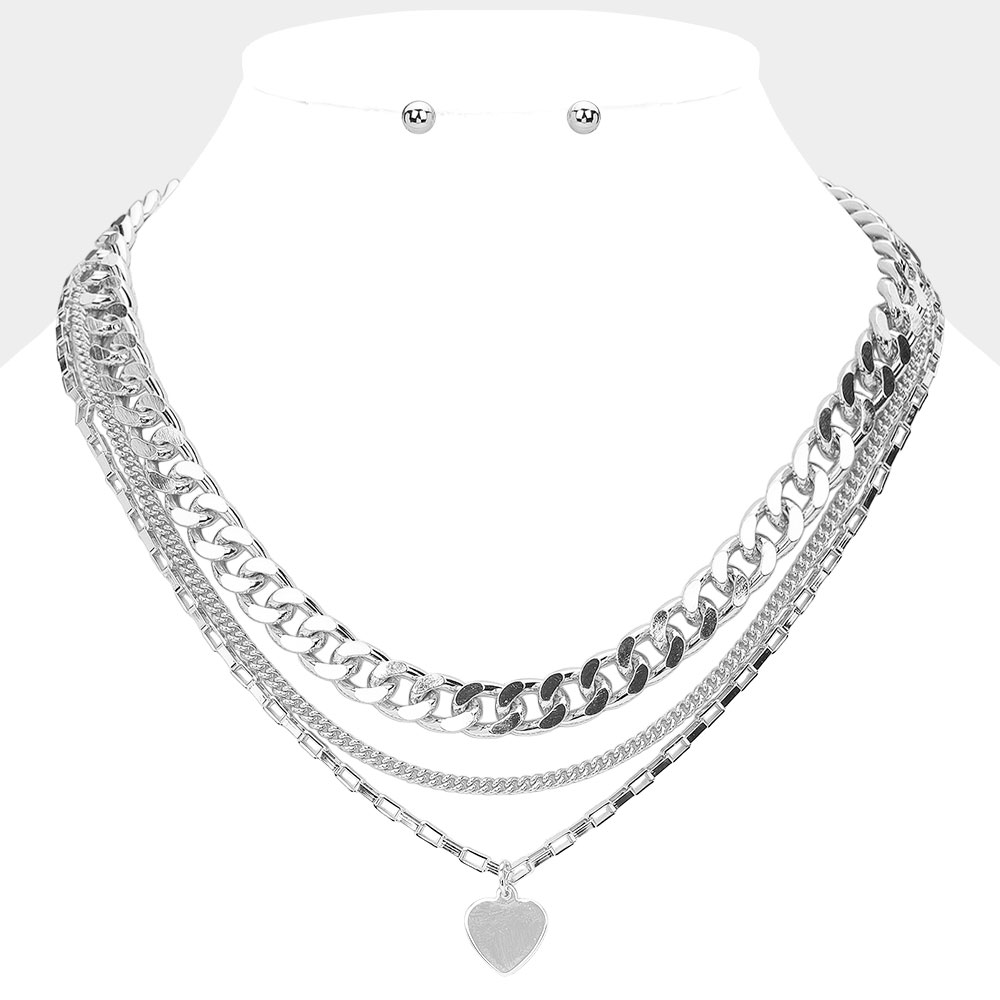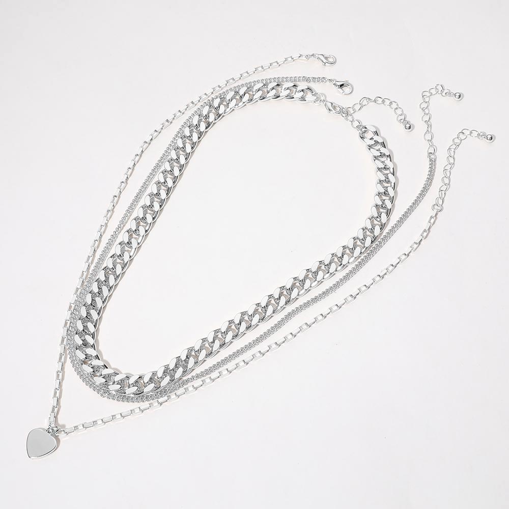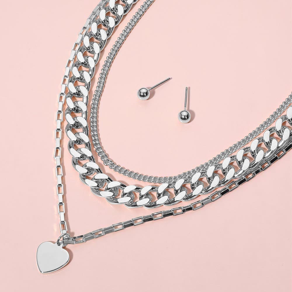 3PCS - Metal Heart Pendant Chunky Chain Layered Necklaces