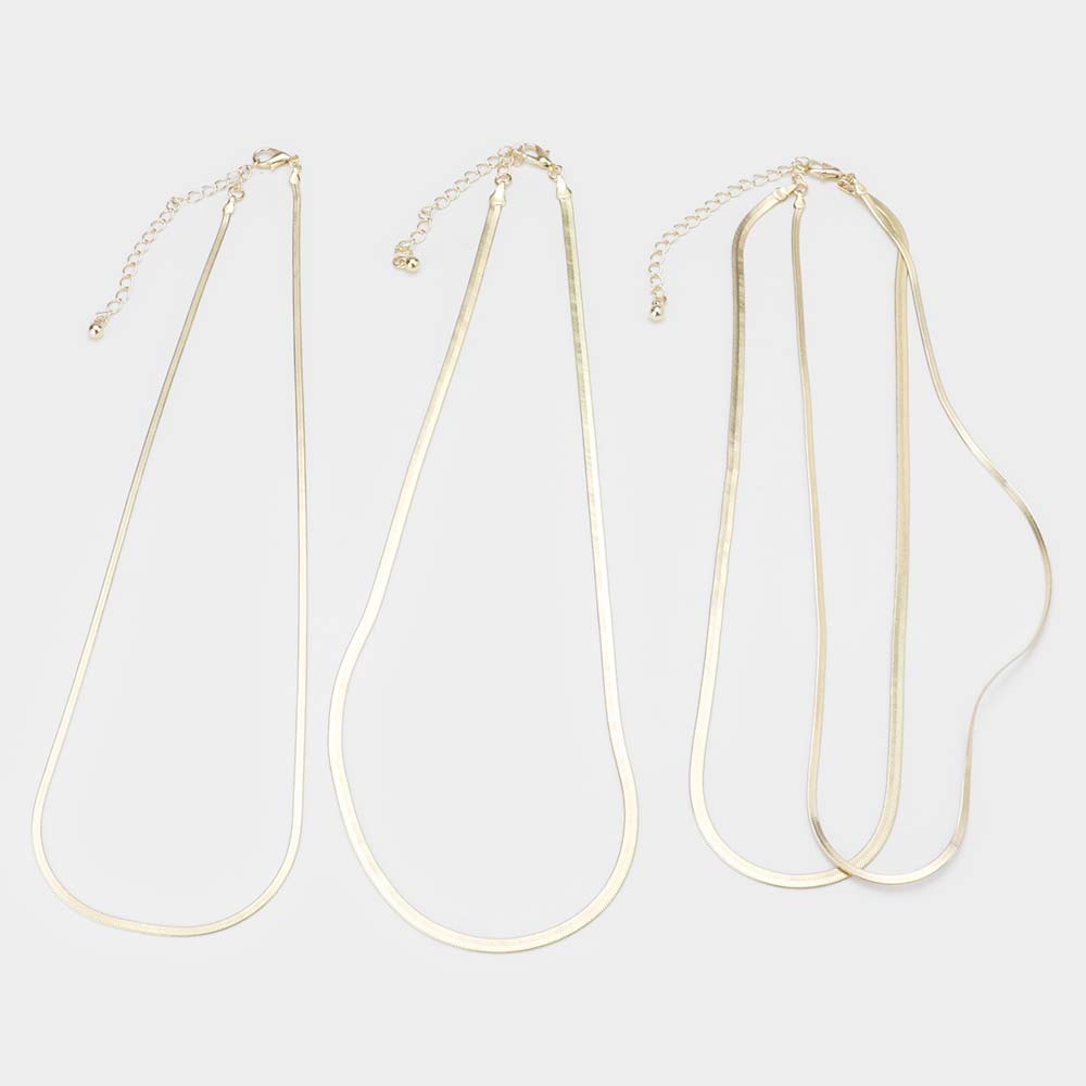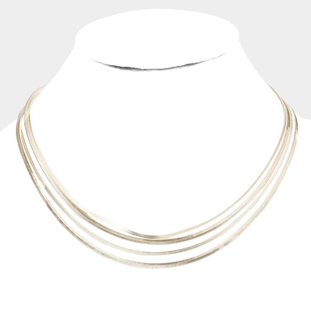 Crescent Moon Detailed Triple Layered Brass Metal Chain Necklace