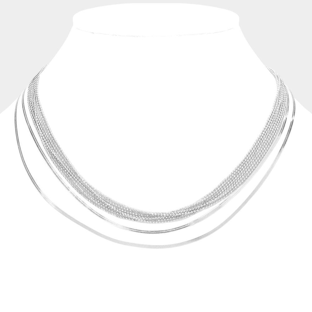 Arrow Star Moon Accented Metal Pendant Multi Layered Bib Necklace