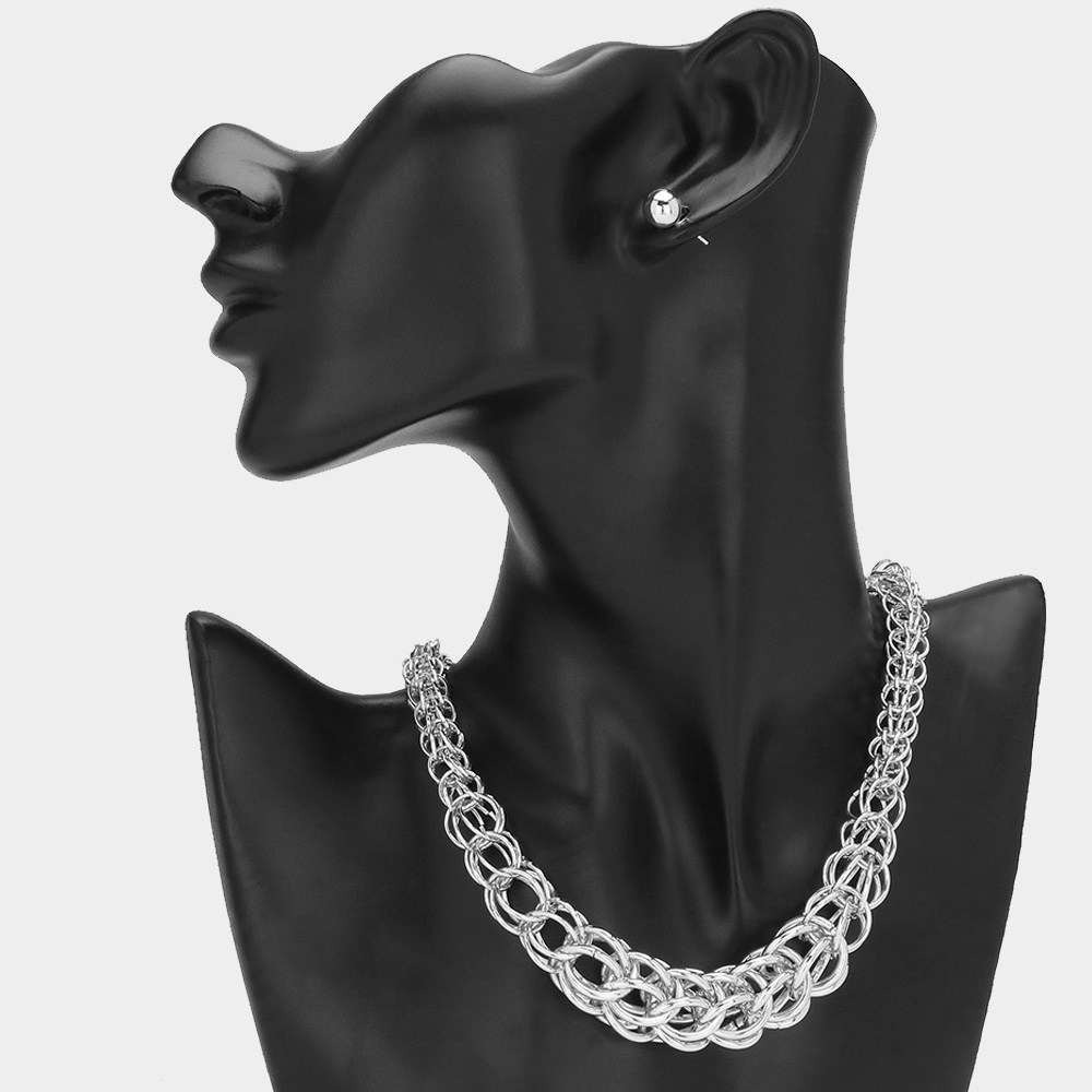 Details • Necklace Size : 17.5" + 3.5" L • Decor Size : 0.75" L • Earrings Size : 0.25" L • Bold chunky chain link necklace crafted with interlocking loops for a powerful statement style. Perfect for layering or wearing solo, this versatile necklace enhances casual and formal looks with edgy sophistication. A must-have statement accessory for modern fashion lovers. • Lead and Nickel Compliant