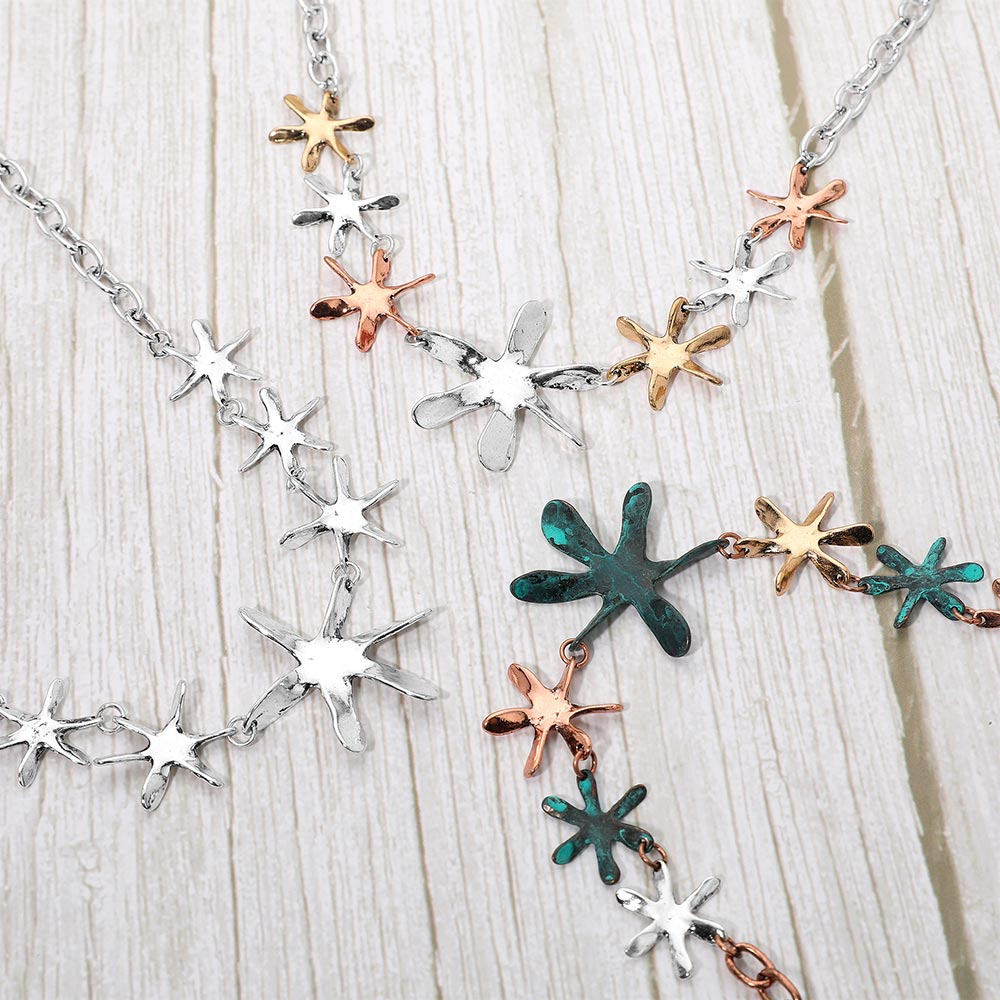 Abstract Metal Boho Flower Charm Link Necklace Abstract Metal Boho Flower Charm Link Necklace Abstract Metal Boho Flower Charm Link Necklace